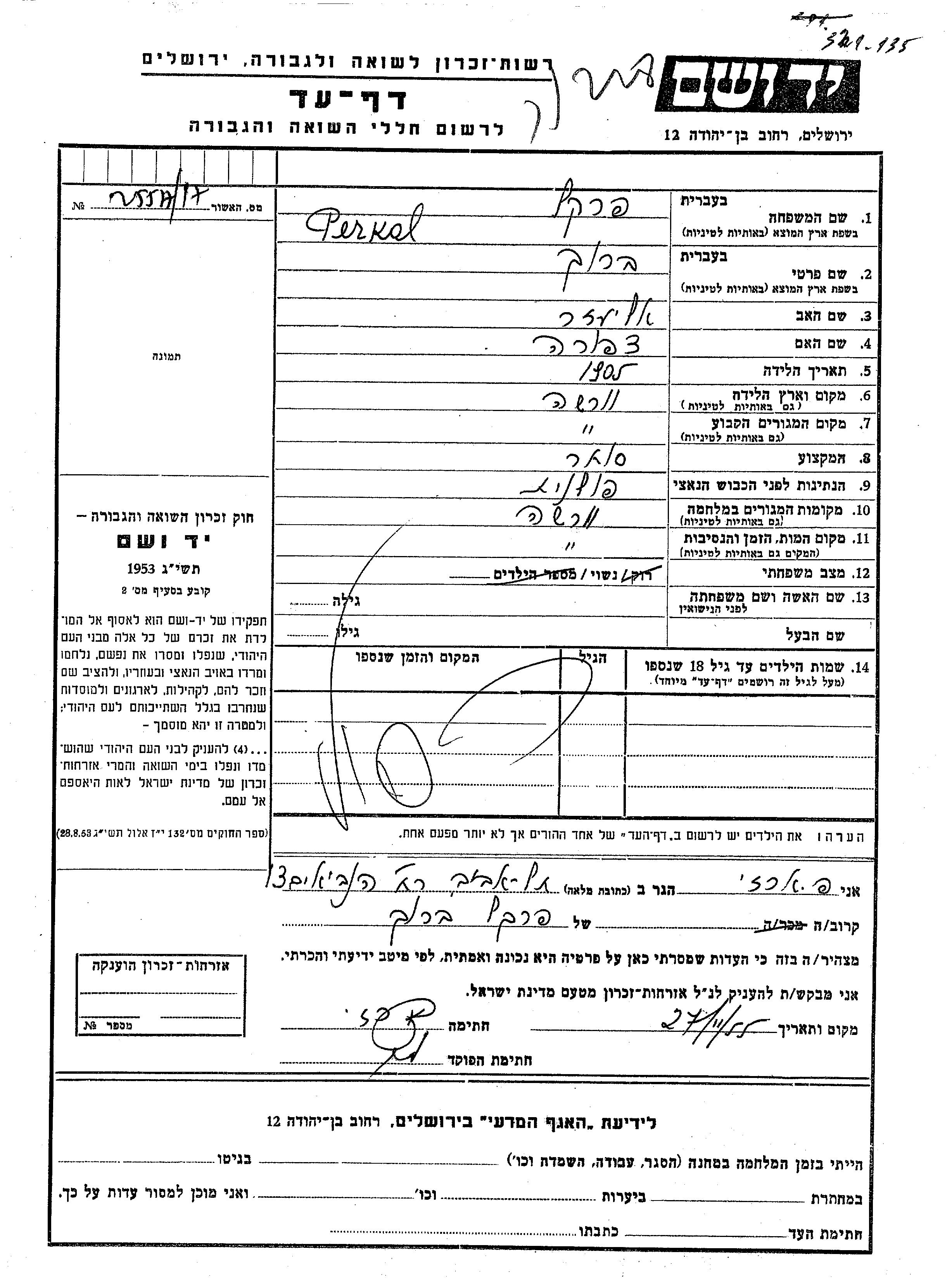 פרקל ברוך 1905 Warszawa, פולין דף-עד