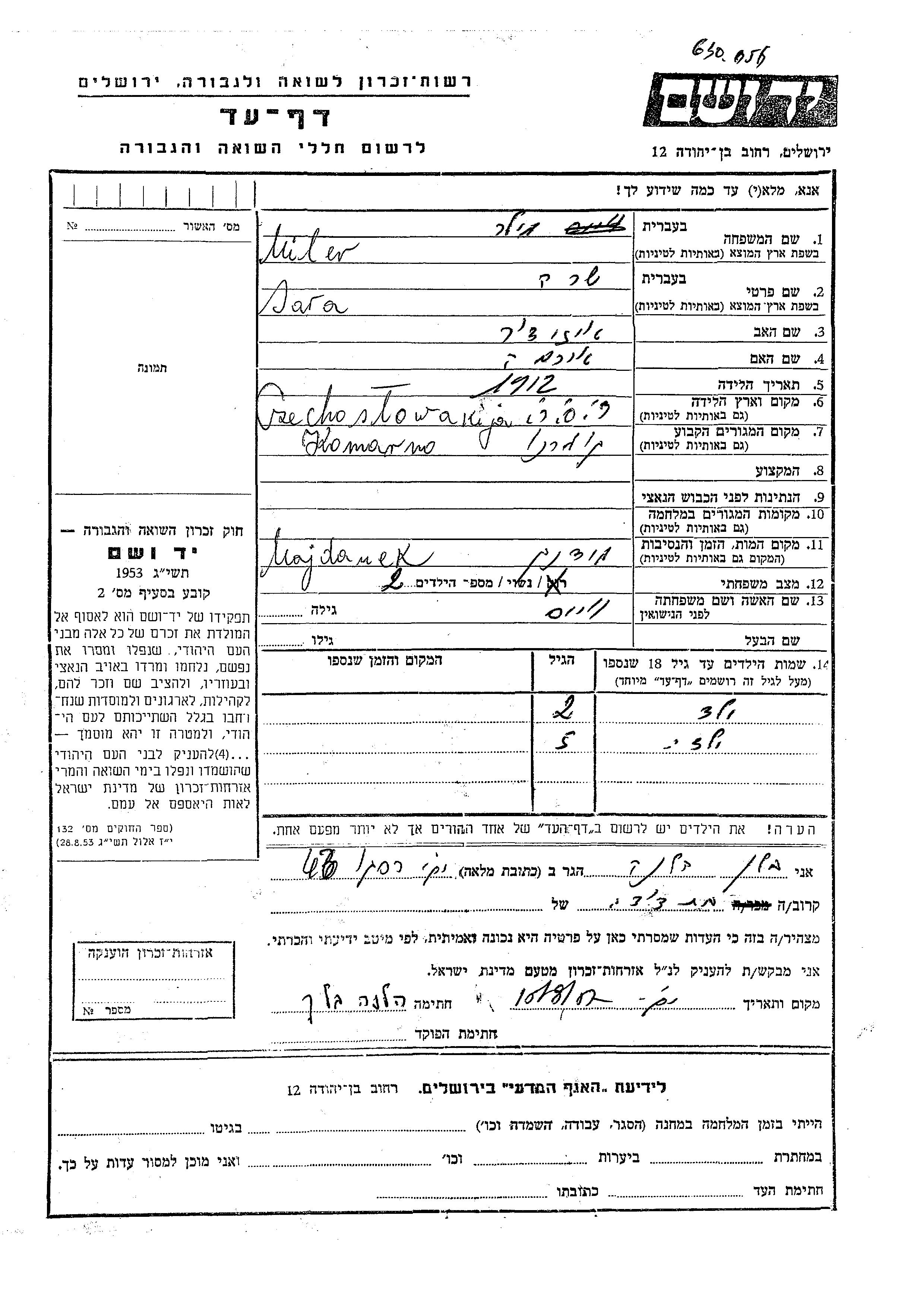 יד ושם - המפעל להנצחת השמות בדפי עד