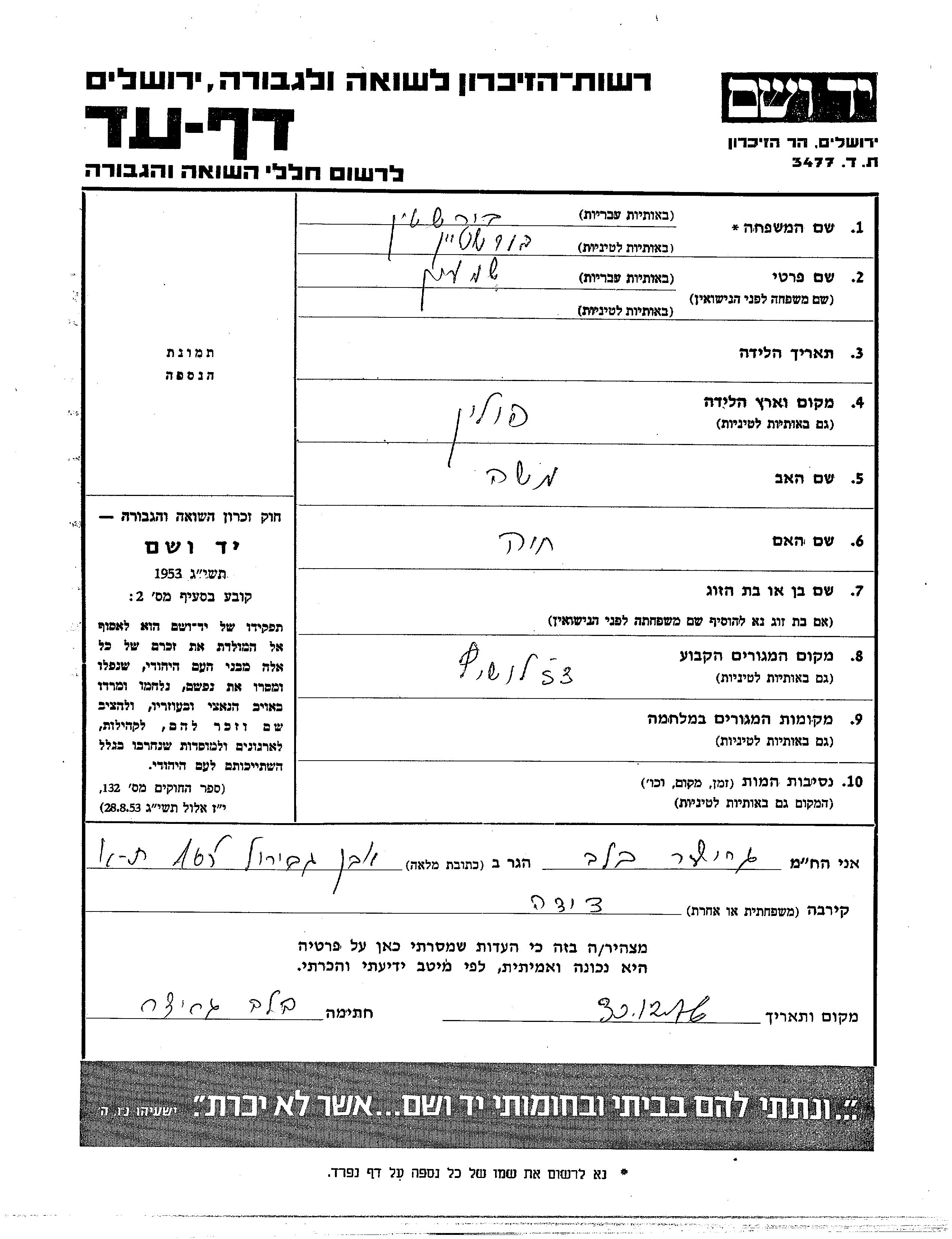 יד ושם - המפעל להנצחת השמות בדפי עד