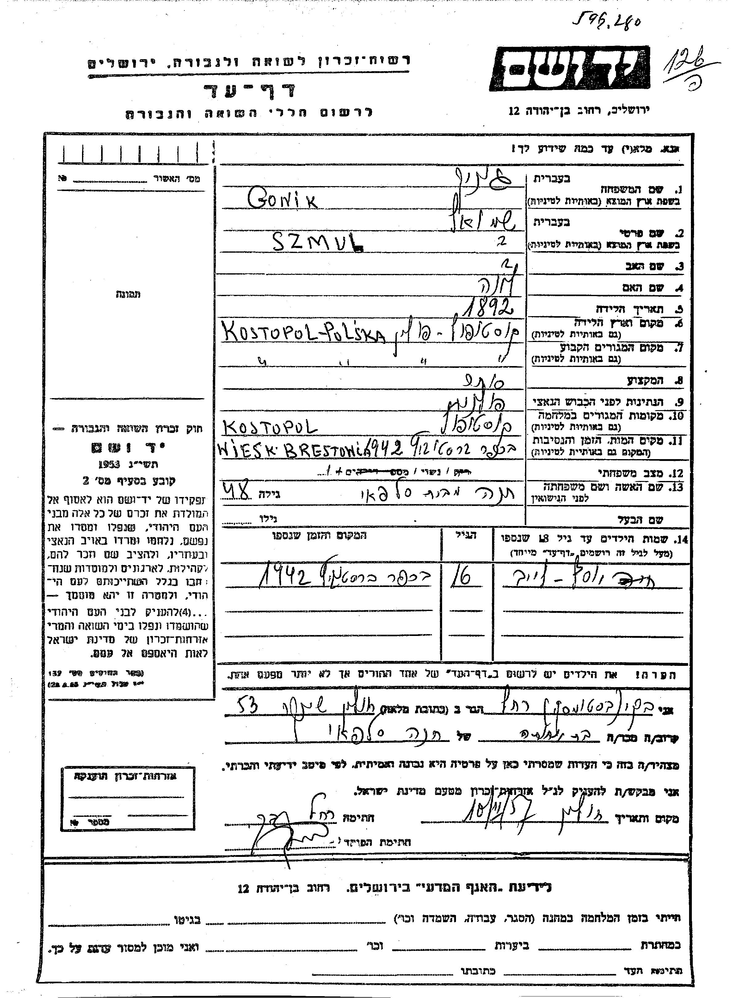 גוניק Szmul 1892 Kostopol, פולין דף-עד