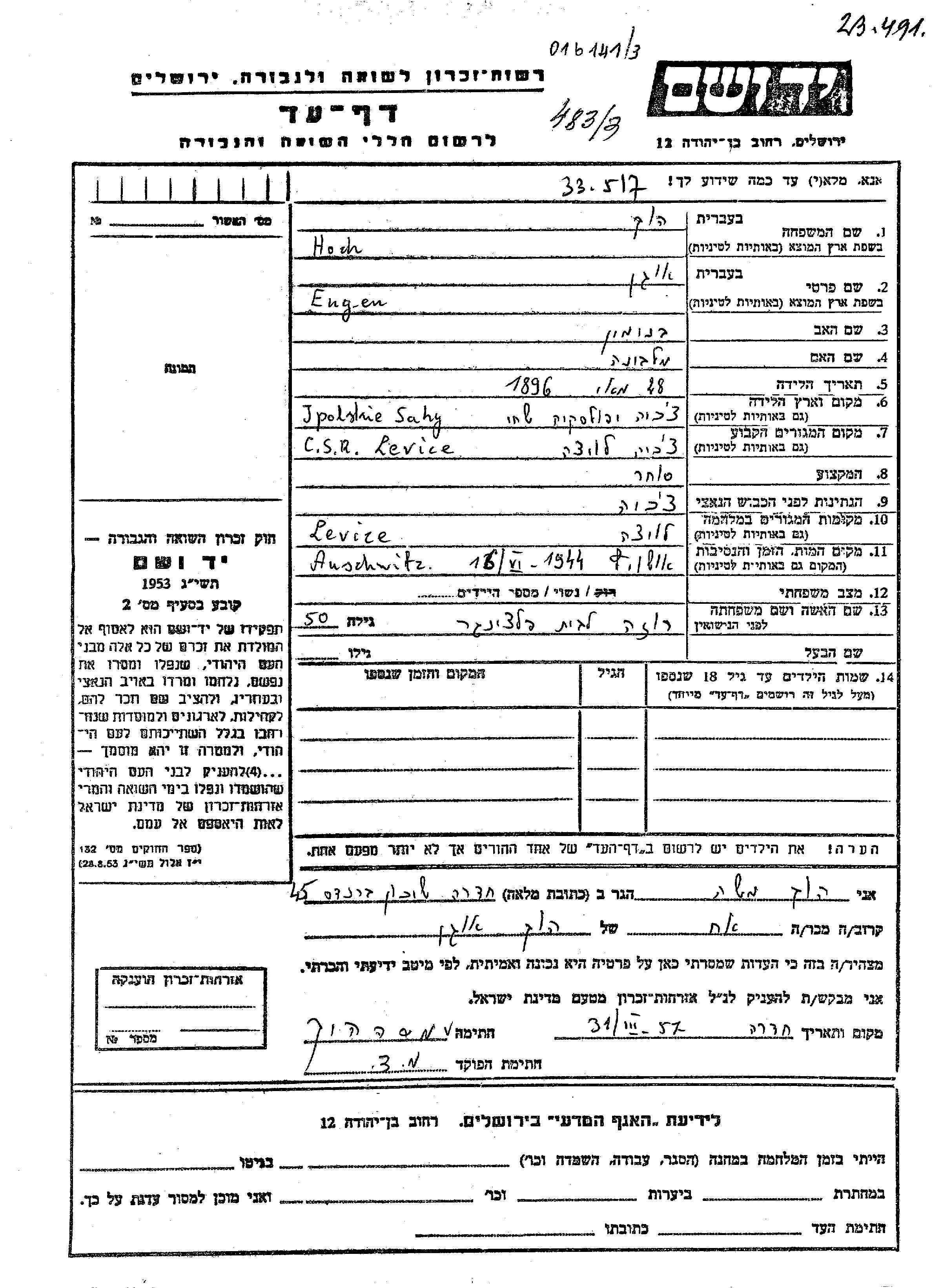 יד ושם - המפעל להנצחת השמות בדפי עד