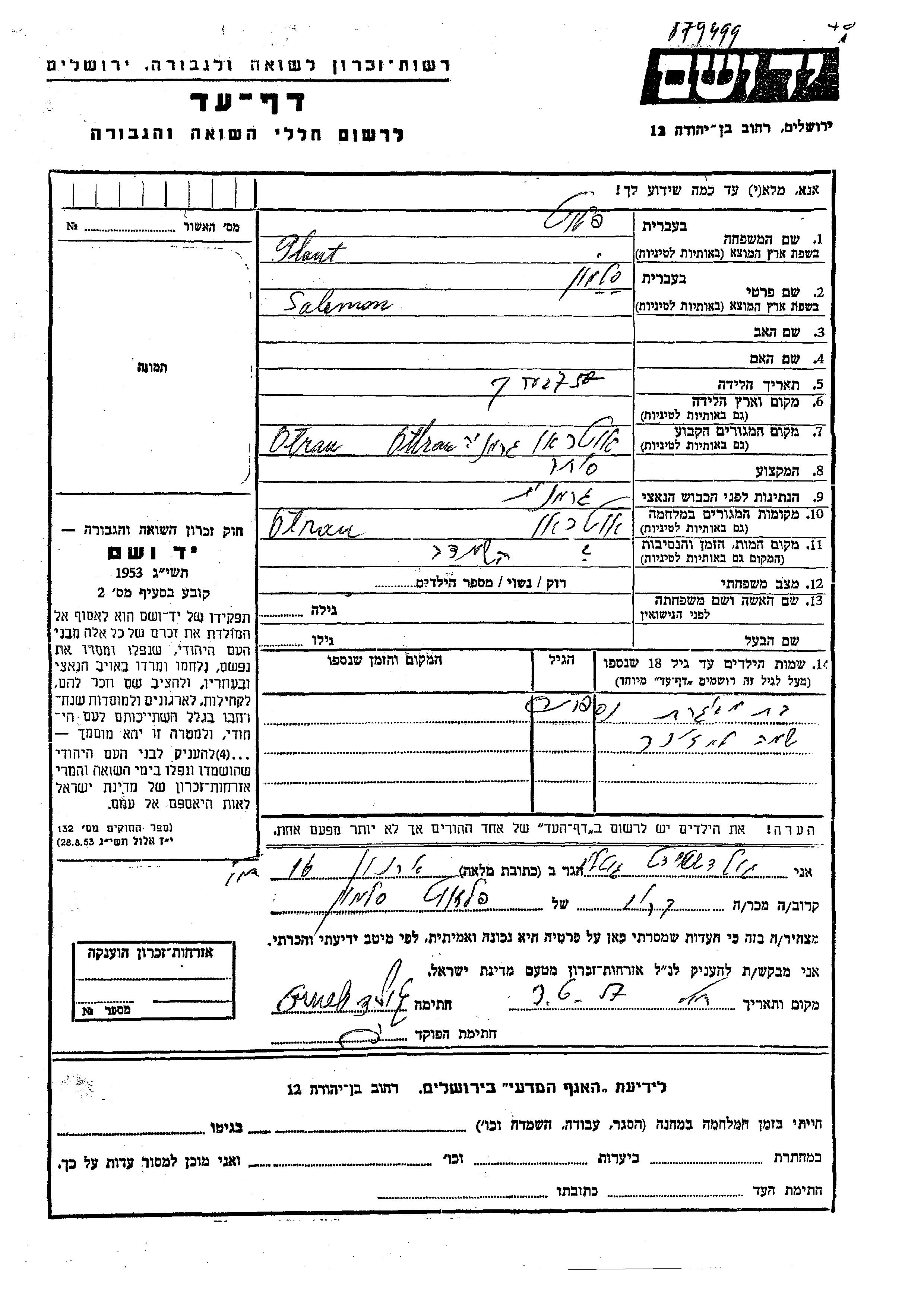 יד ושם - המפעל להנצחת השמות בדפי עד