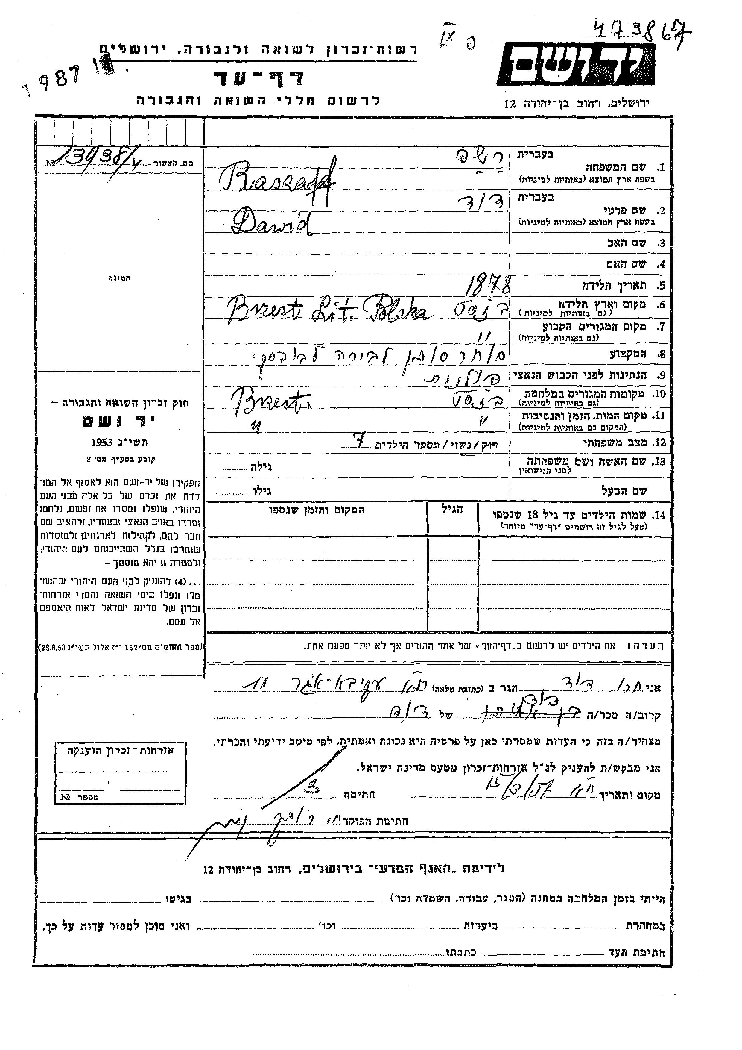 Dawid Raszaff נולד בBrest Litowsk שבפולין בשנת 1878. הוא היה סוחר ונשוי. לפני מלחמת העולם השניה התגורר בBrest Litowsk שבפולין. בזמן המלחמה הוא היה בBrest Litowsk שבפולין. הוא נרצח בשואה. מקום המוות: Brest Litowsk שבפולין.
