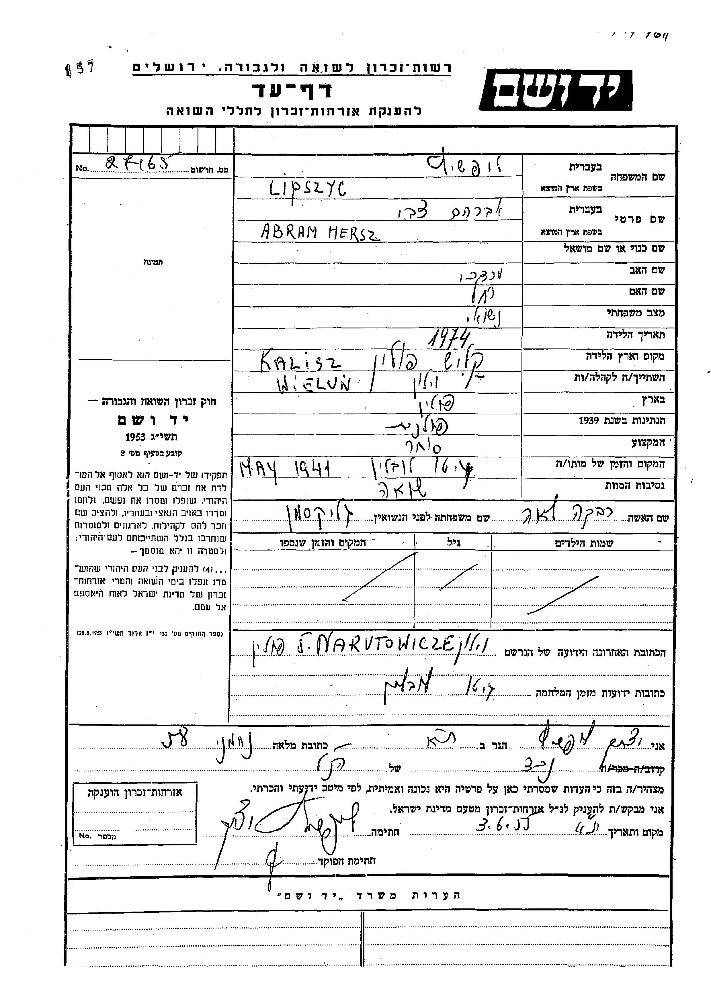 Lipszyc אברם Hersz צבי 1874 Wielun, פולין דף-עד
