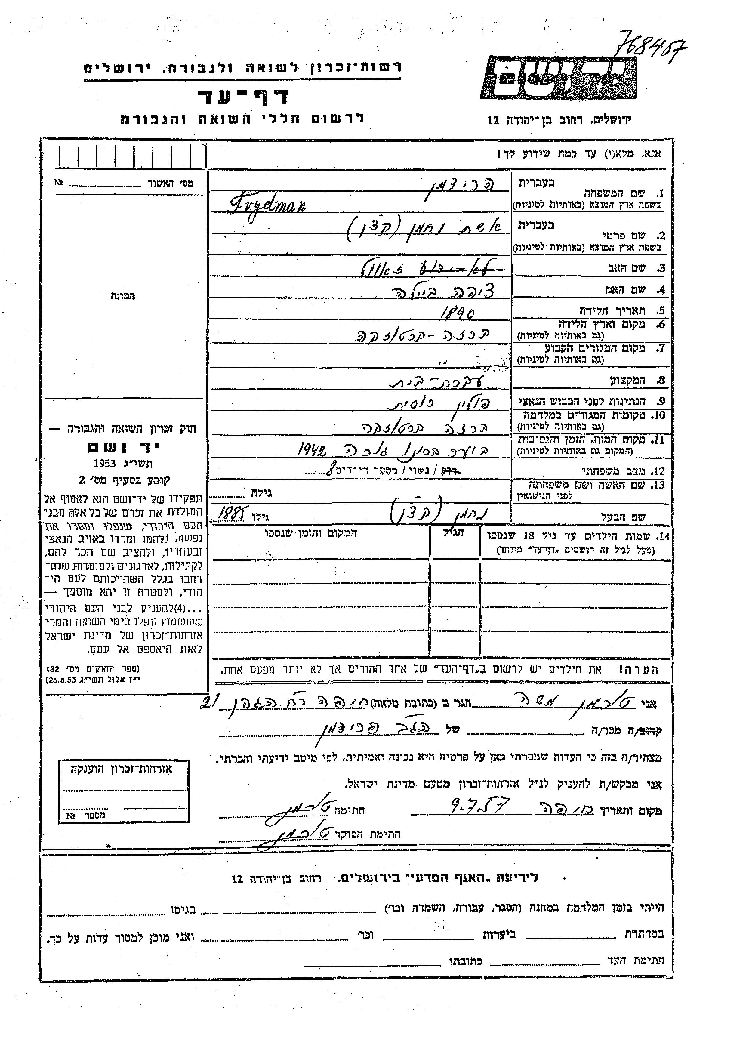 יד ושם - המפעל להנצחת השמות בדפי עד