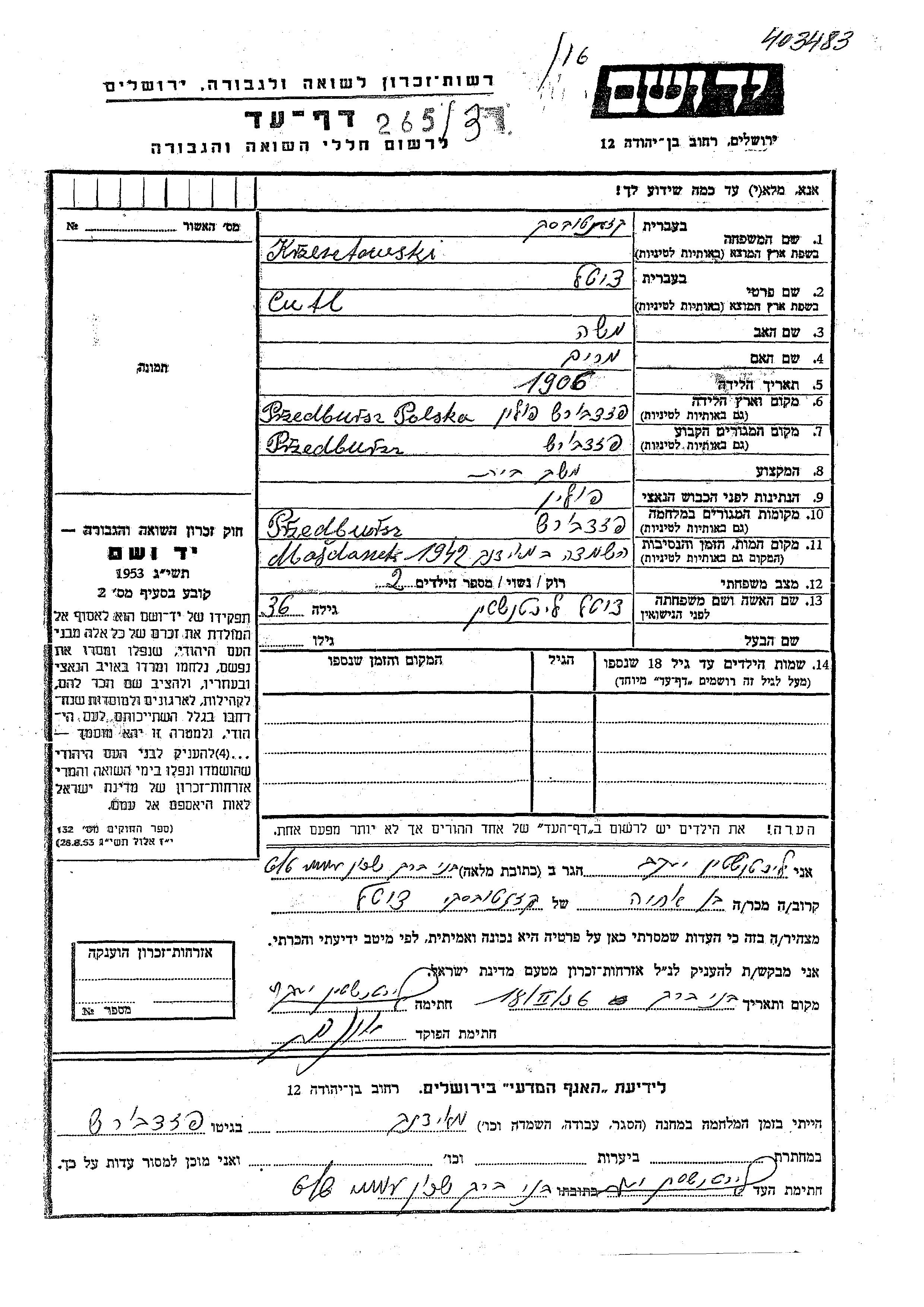 קזענטובסקי קזנטובסקי Cutl צוטל 1906 Przedborz, פולין דף-עד