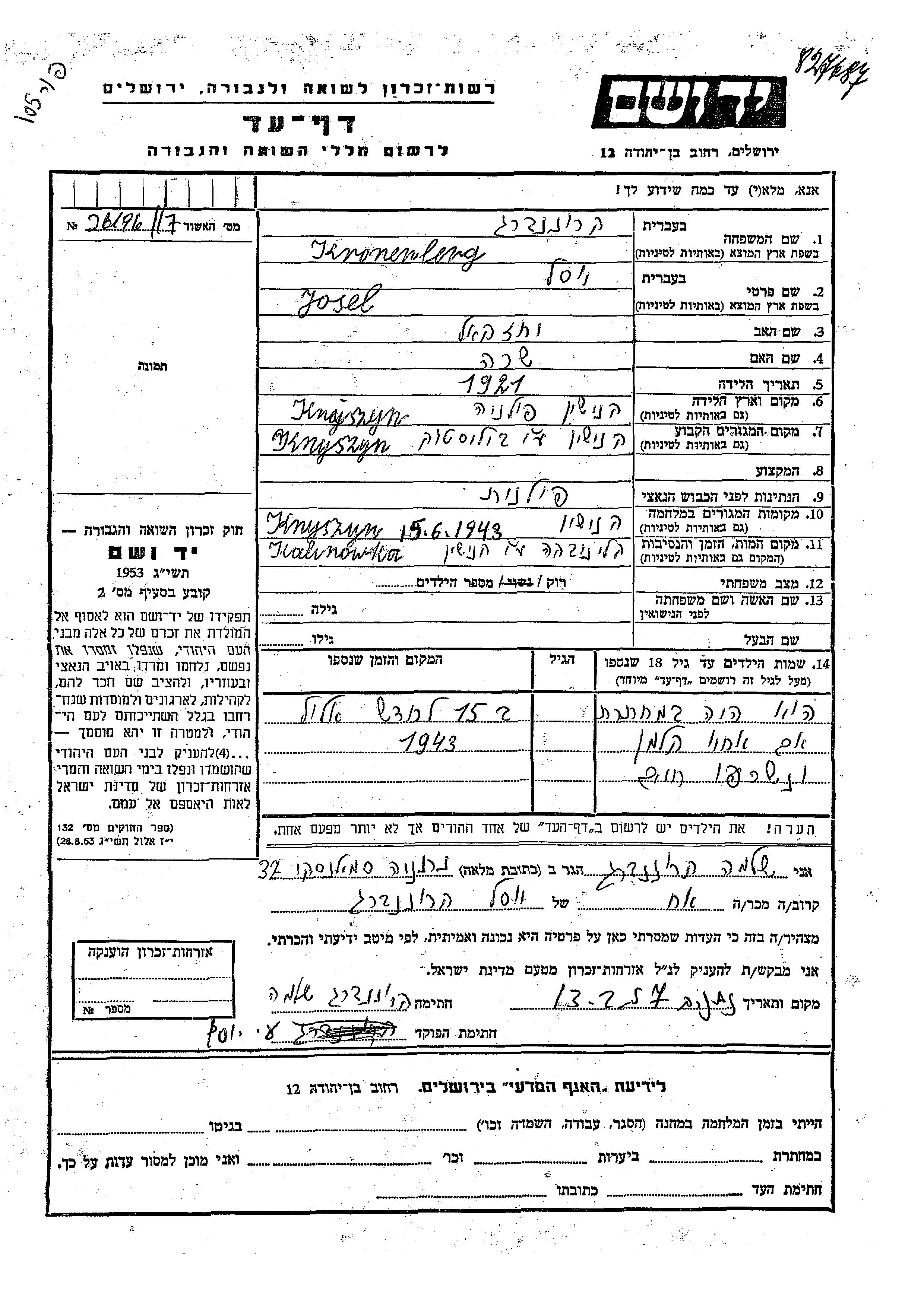 קרוננברג Josel 1921 Knyszyn, פולין דף-עד