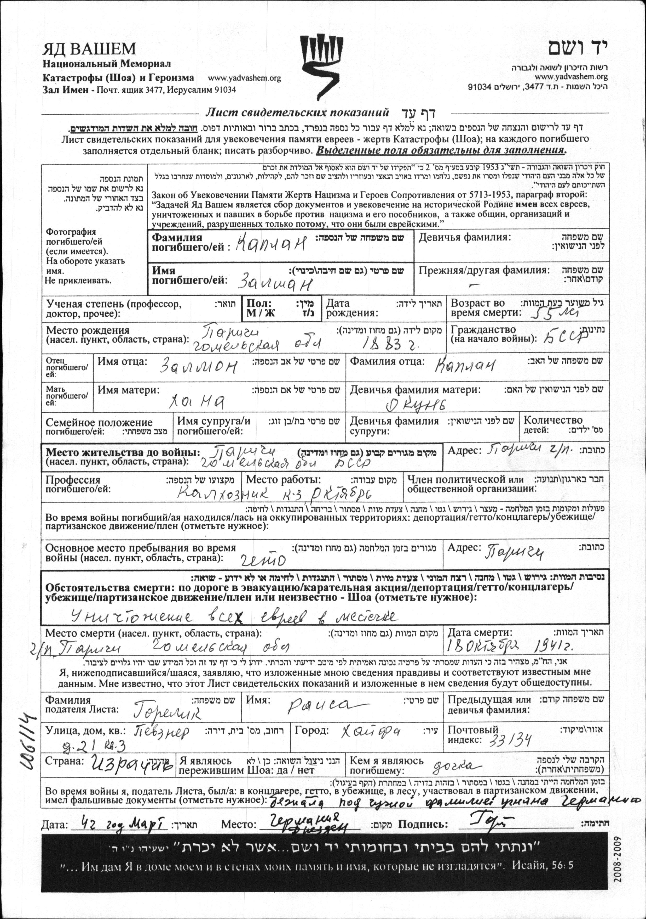 עיר/כפר, גטו/מחנה או אתר רצח או מחוז/אזור או מדינה. שם מקום ניתן לחפש רק בא-ב לטיני.