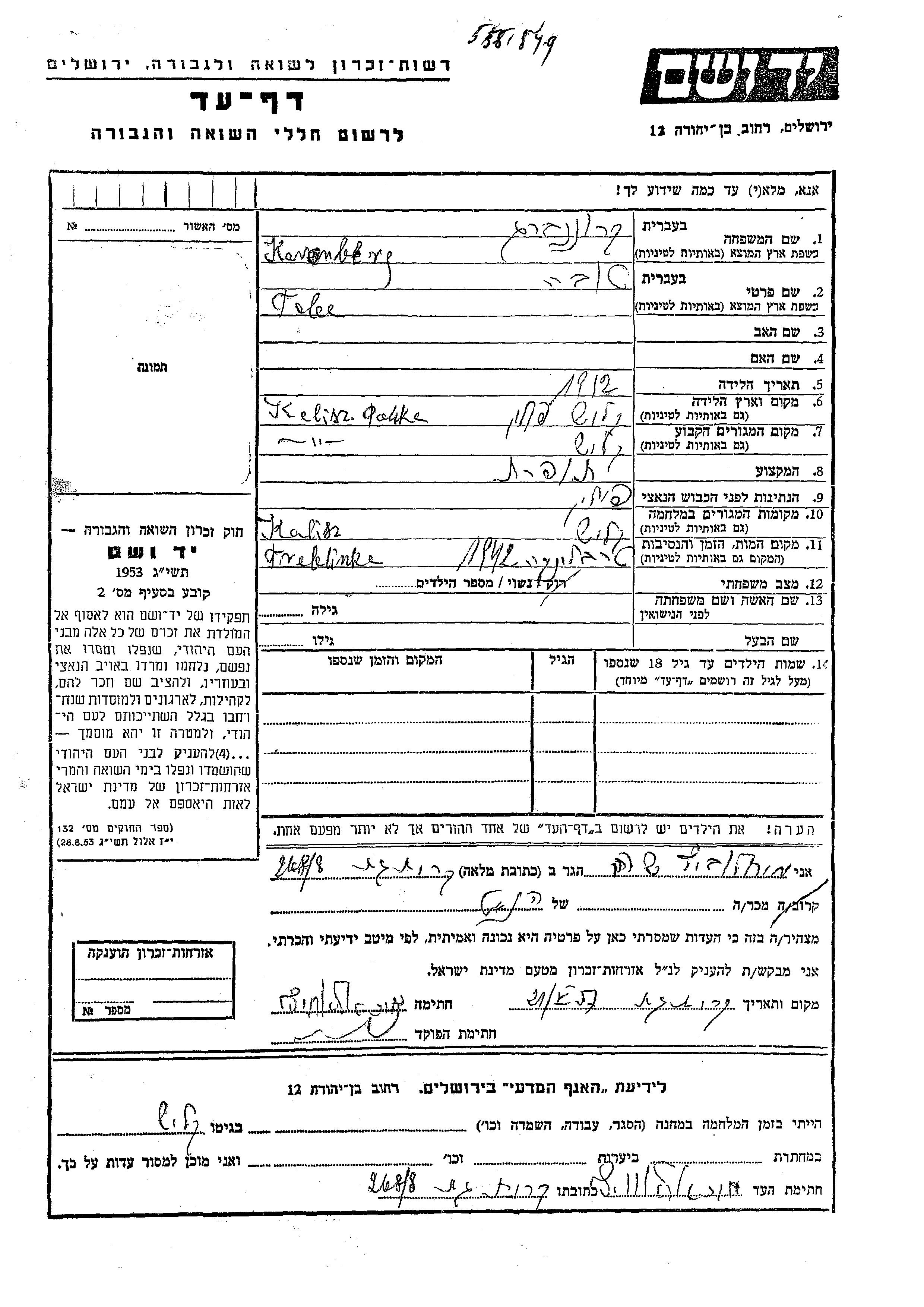 יד ושם - המפעל להנצחת השמות בדפי עד