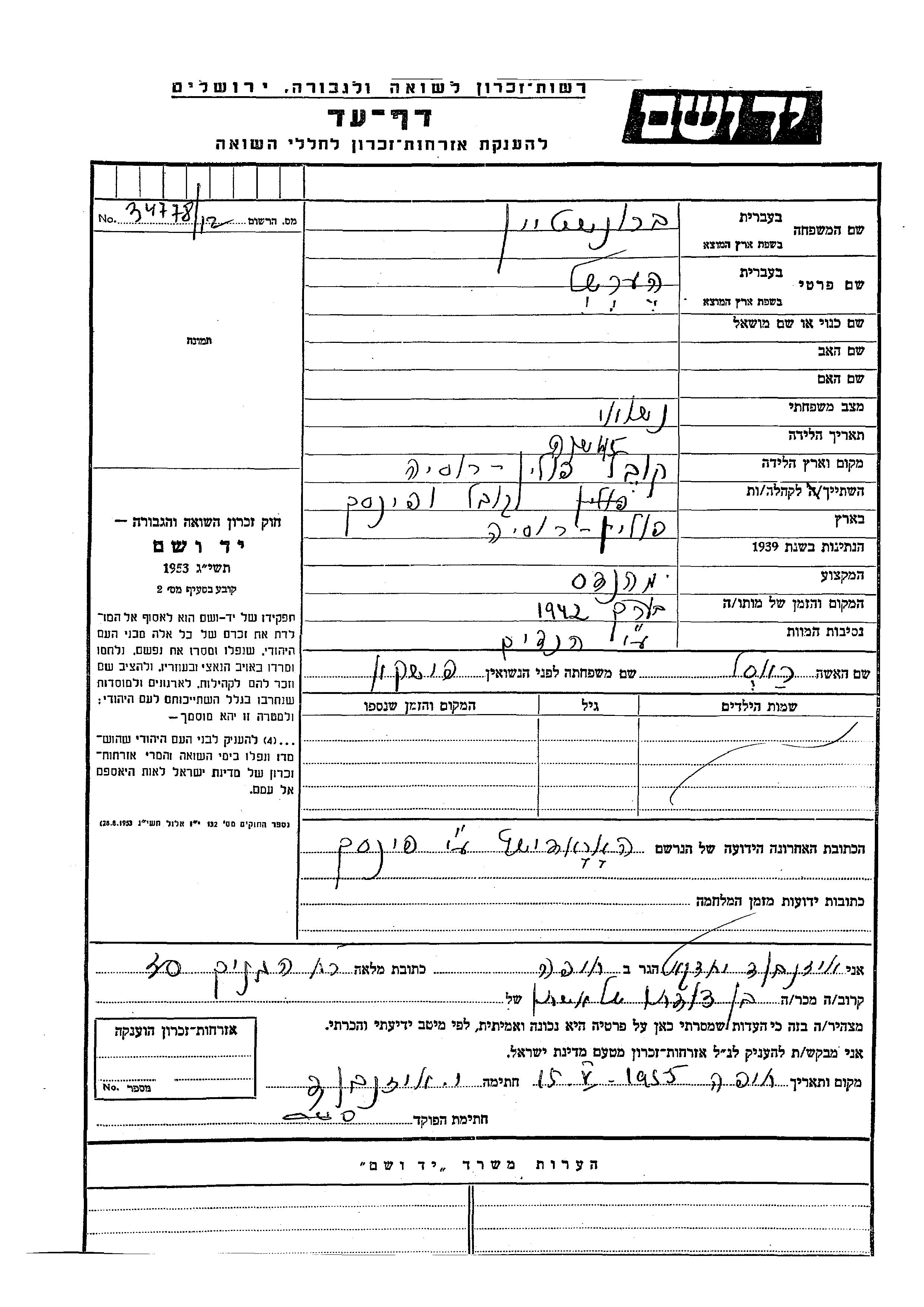 הערשל ברונשטיין נולד בKowel שבפולין. הוא היה מהנדס ונשוי לראסל לבית פישקין. לפני מלחמת העולם השניה התגורר בHorodec שבפולין. הערשל נרצח בשואה. מקום המוות: לא ידוע בשנת 1942.