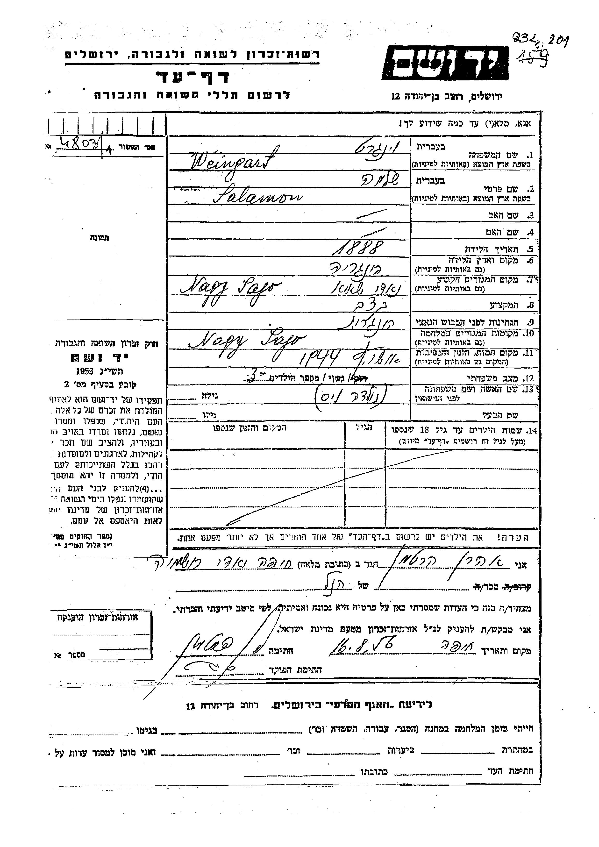 יד ושם - המפעל להנצחת השמות בדפי עד