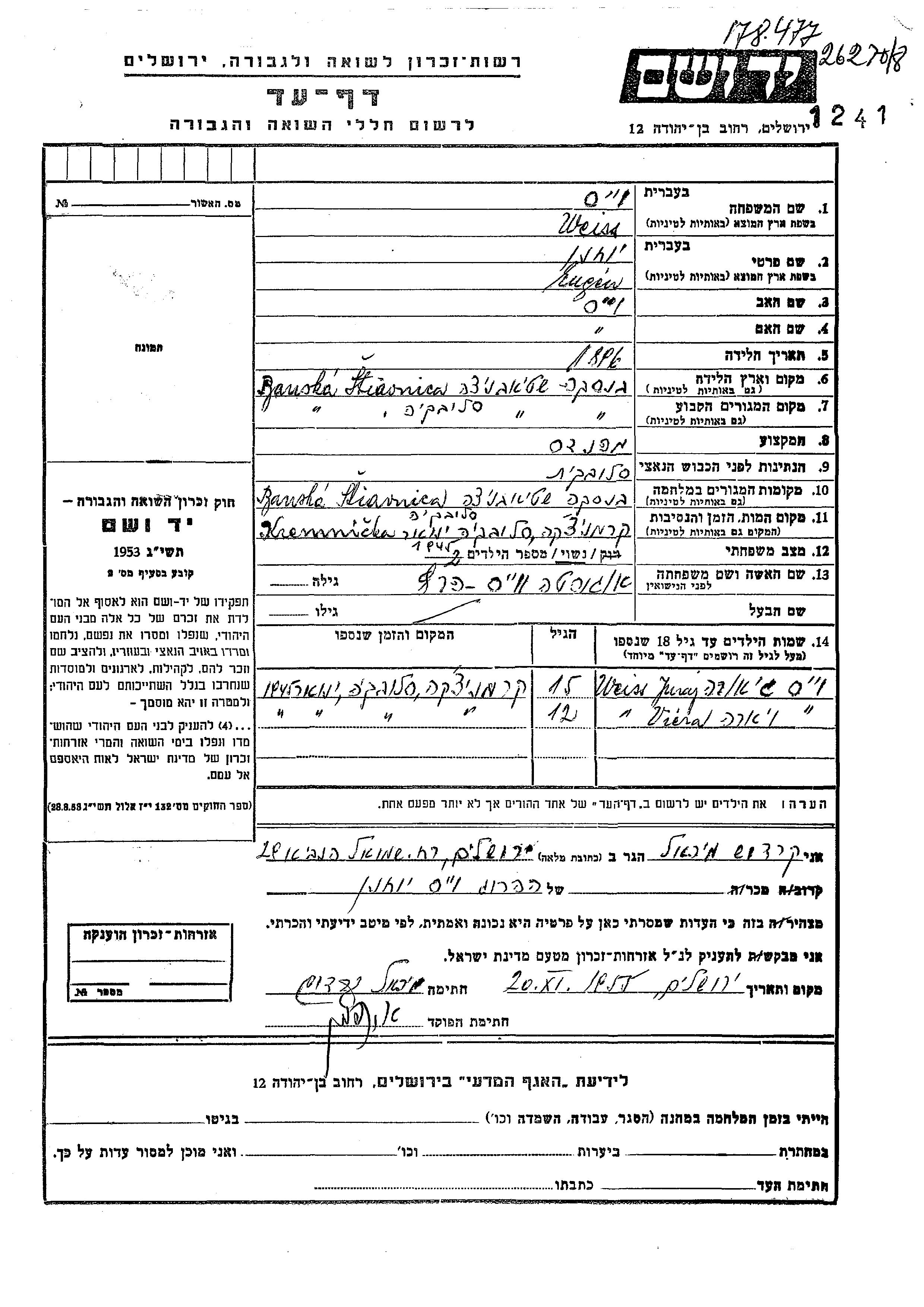 Weiss Eugin יוחנן 1896 Banska Stavnica, צ'כוסלובקיה דף-עד