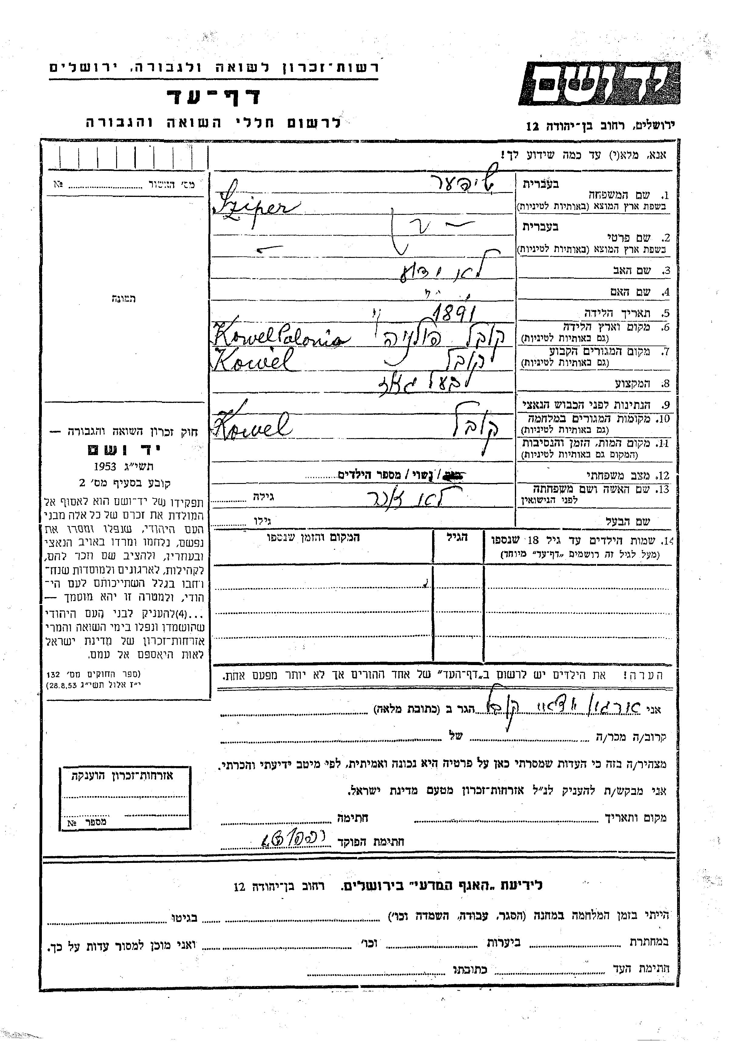 יד ושם - המפעל להנצחת השמות בדפי עד