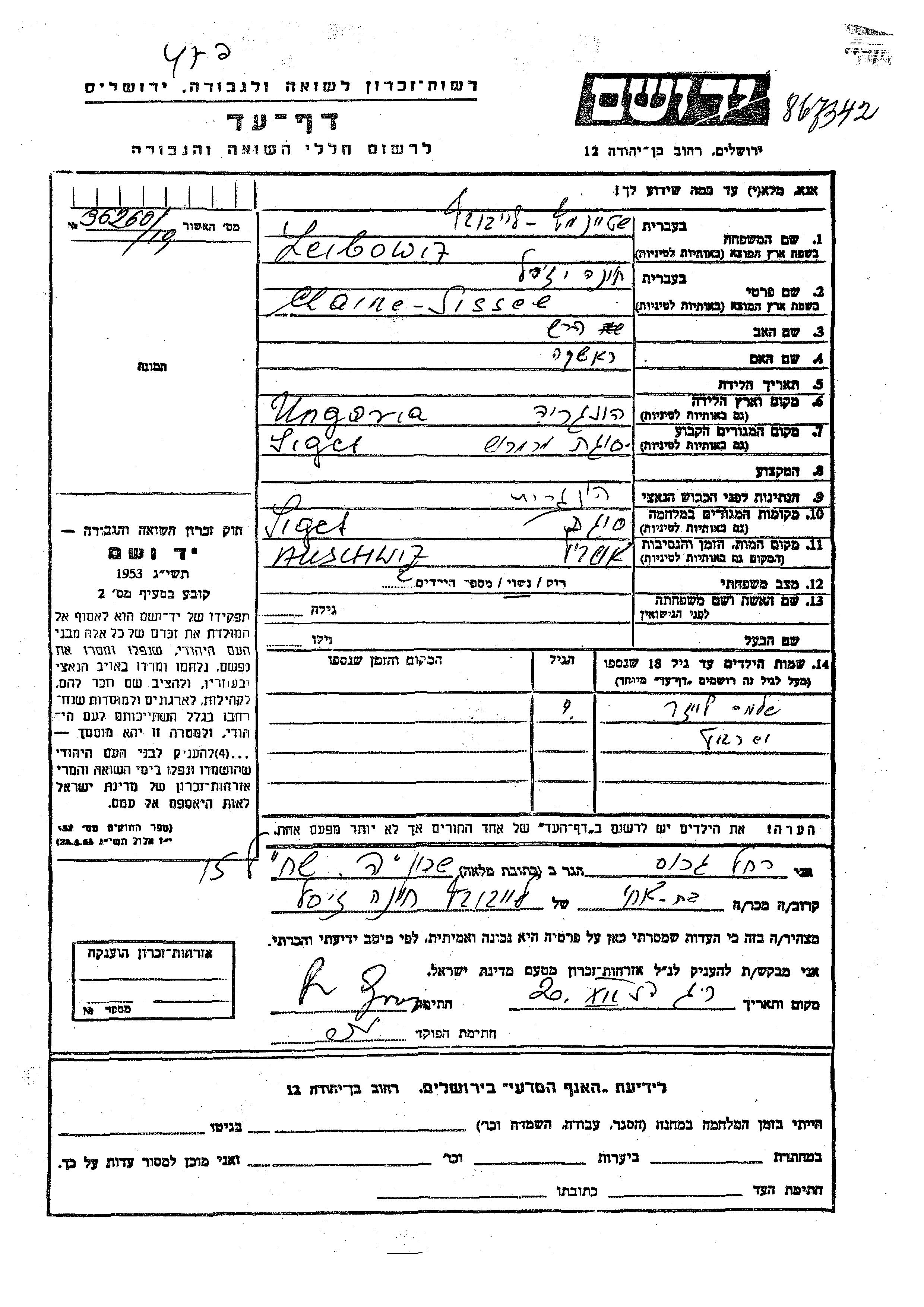 Chaine Sissel חונה זיסל Leibowiz שטיינמץ נולד בהונגריה להרש וראשקה. הוא היה נשוי. לפני מלחמת העולם השניה התגורר בSiget שברומניה. בזמן המלחמה הוא היה בSiget שברומניה. הוא נרצח בשואה. מקום המוות: Auschwitz שבפולין.