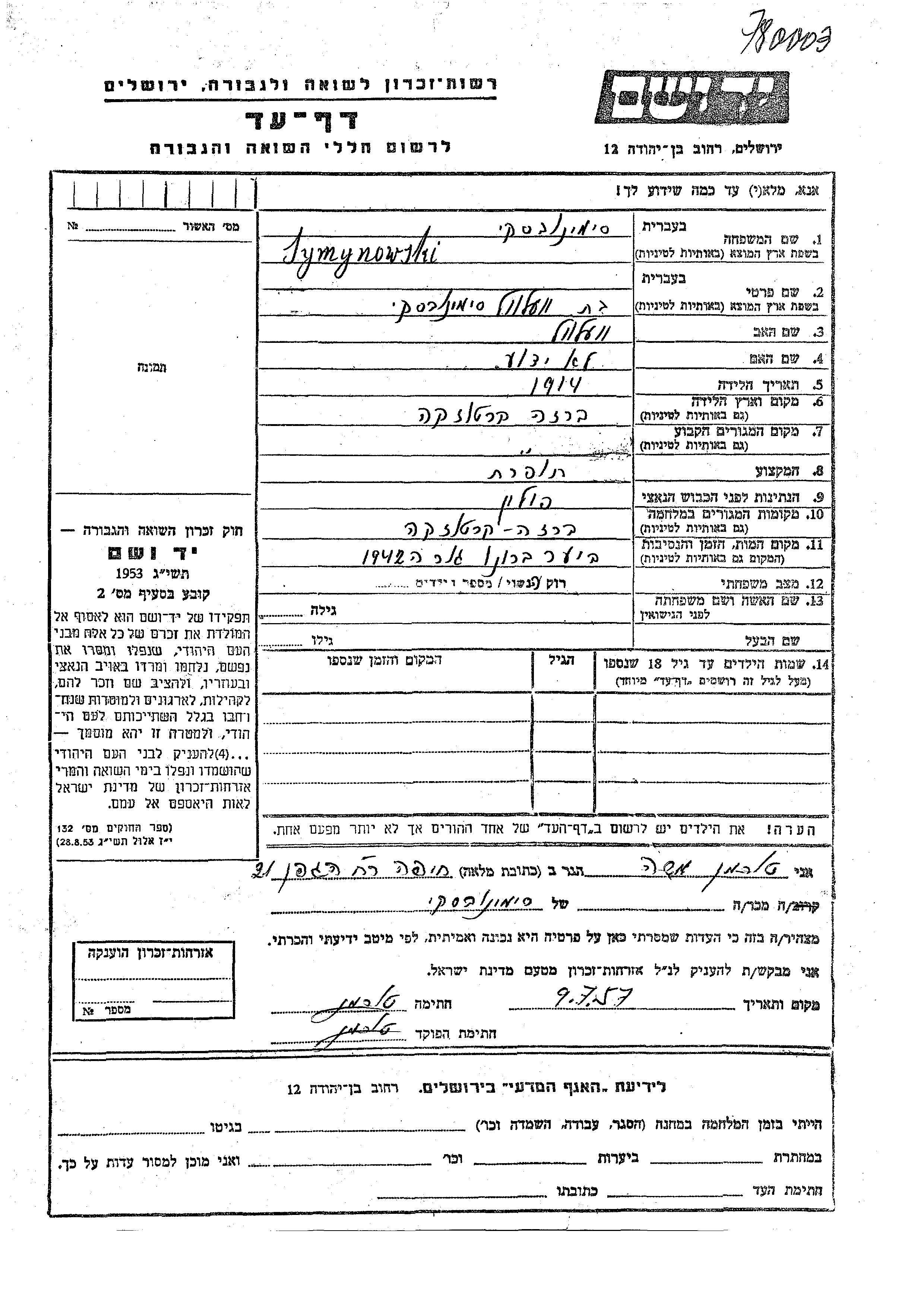 יד ושם - המפעל להנצחת השמות בדפי עד