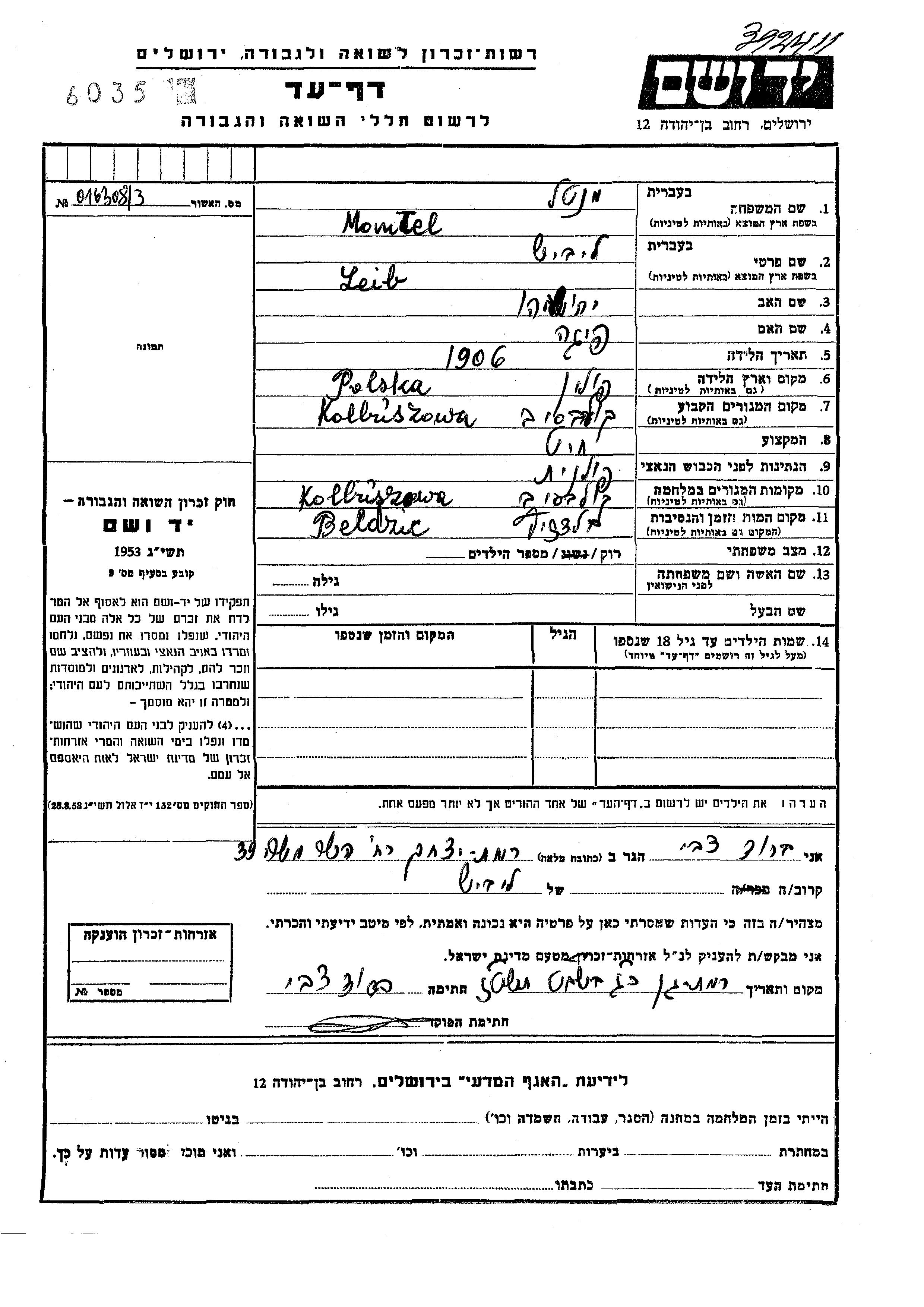 ליביש מנטל נולד בפולין בשנת 1906 ליהושיהו ופייגה. הוא היה חייט ורווק. לפני מלחמת העולם השניה התגורר בKolbuszowa שבפולין. בזמן המלחמה הוא היה בKolbuszowa שבפולין. ליביש נרצח בשואה. מקום המוות: Belzec שבפולין.
