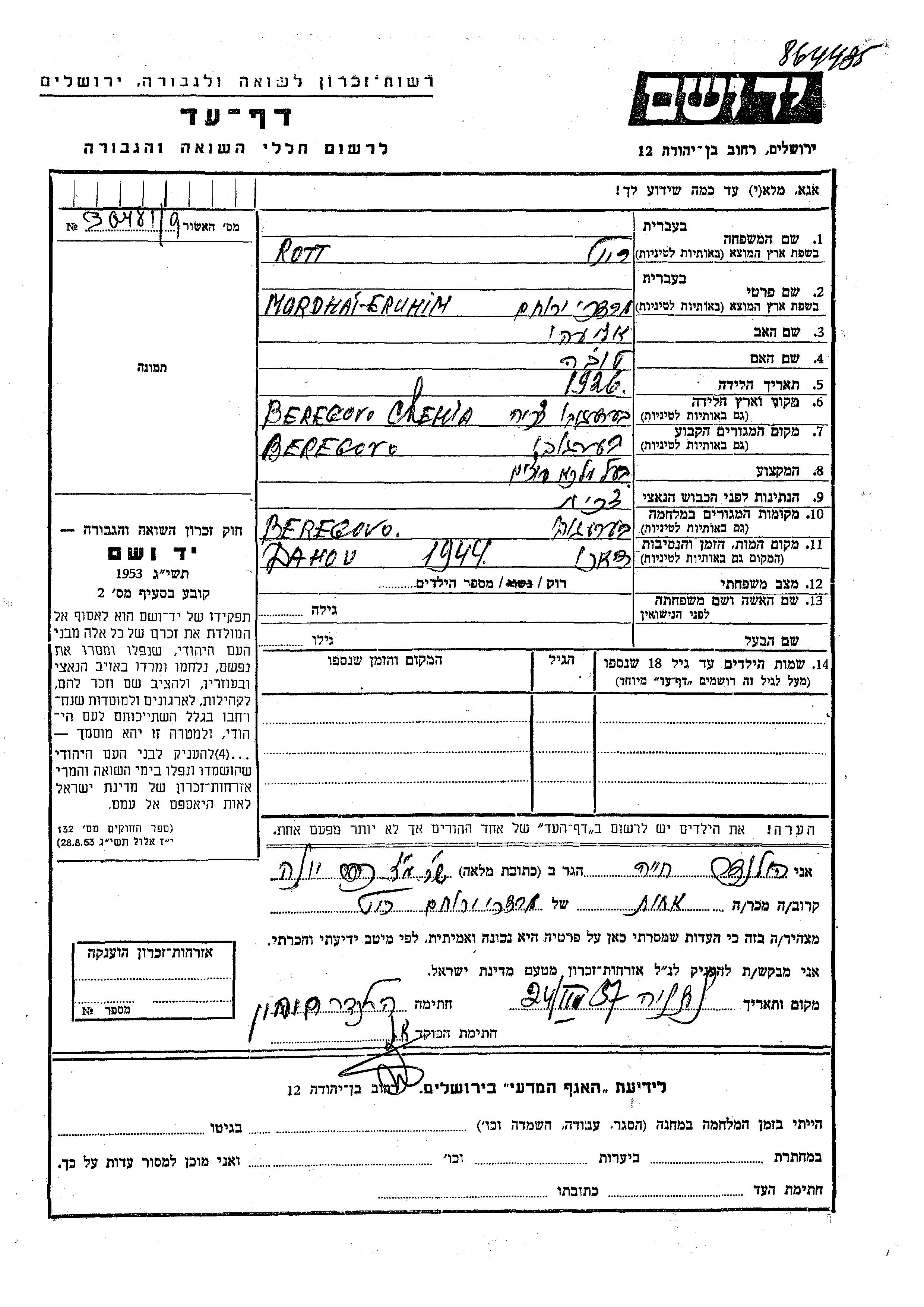 Rott רוט Mordhai Eruhim 1926 Beregovo, צ'כוסלובקיה דף-עד