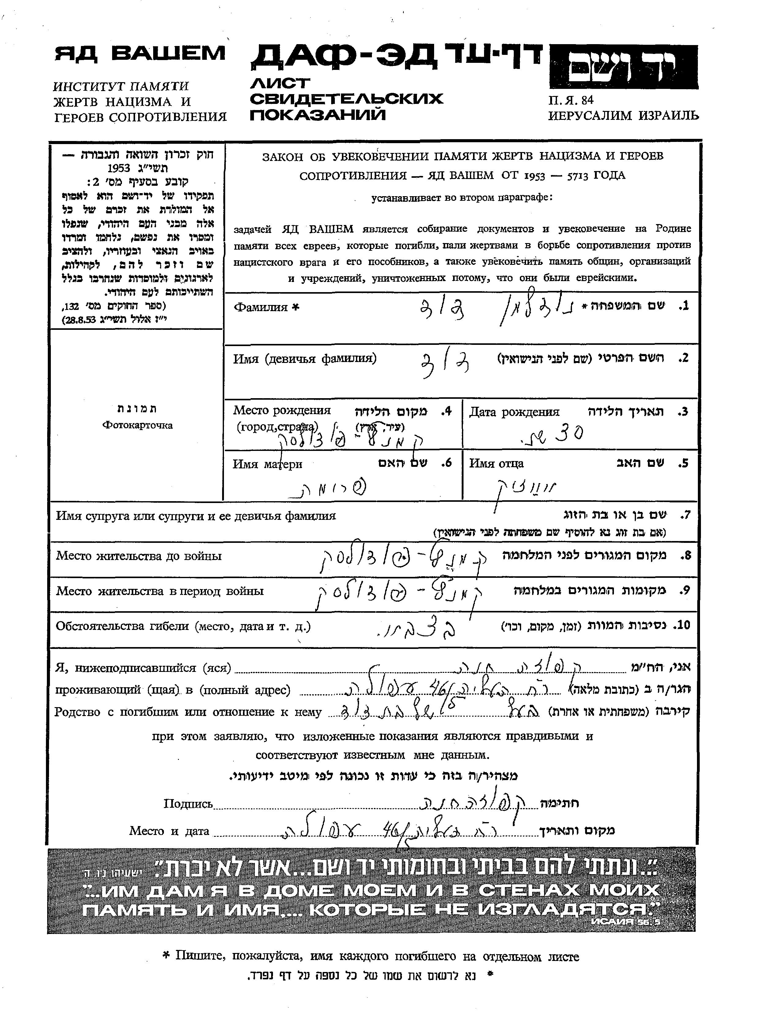 יד ושם - המפעל להנצחת השמות בדפי עד