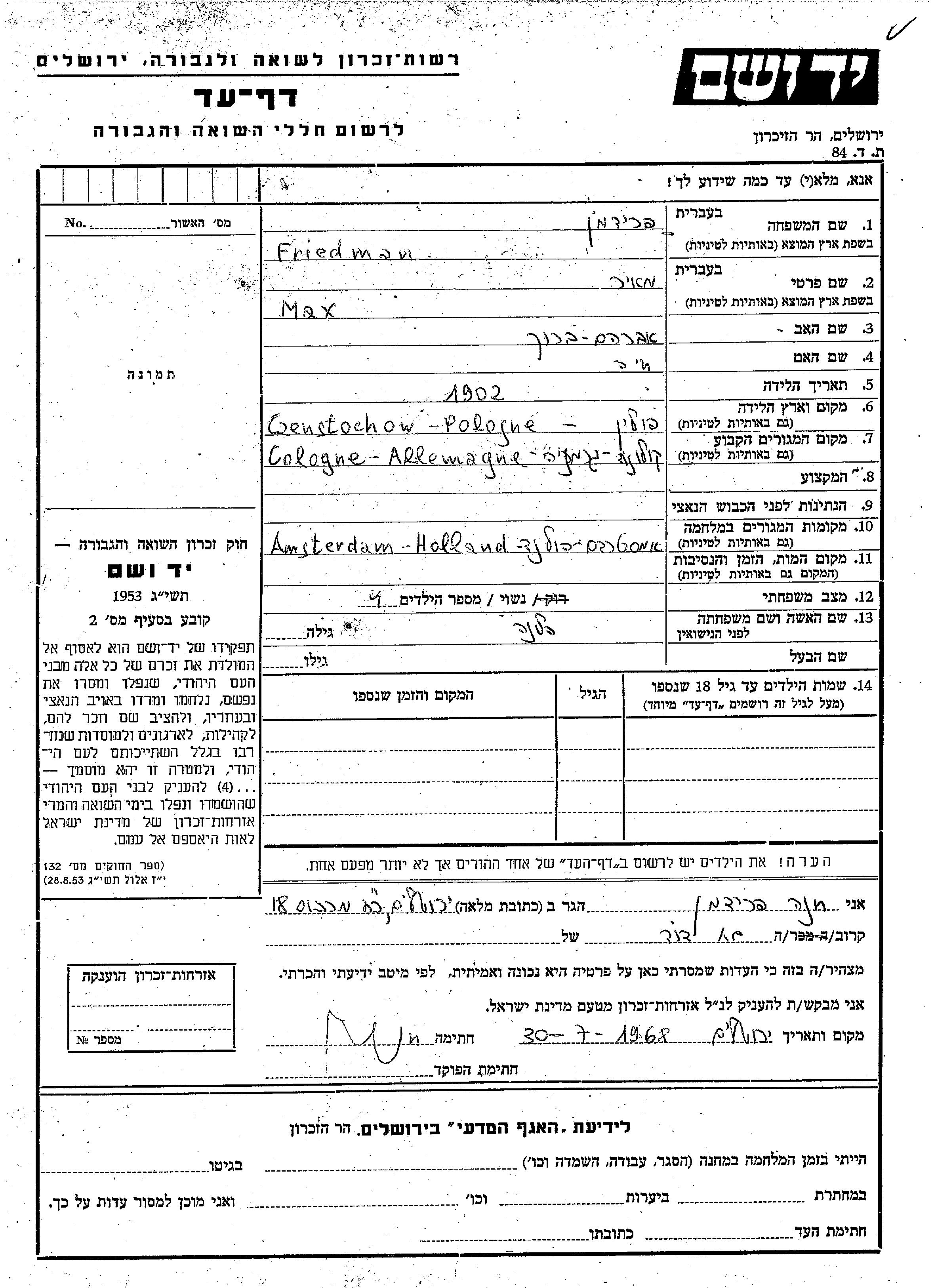 Friedman מקס מאיר 1902 Cologne, גרמניה דף-עד