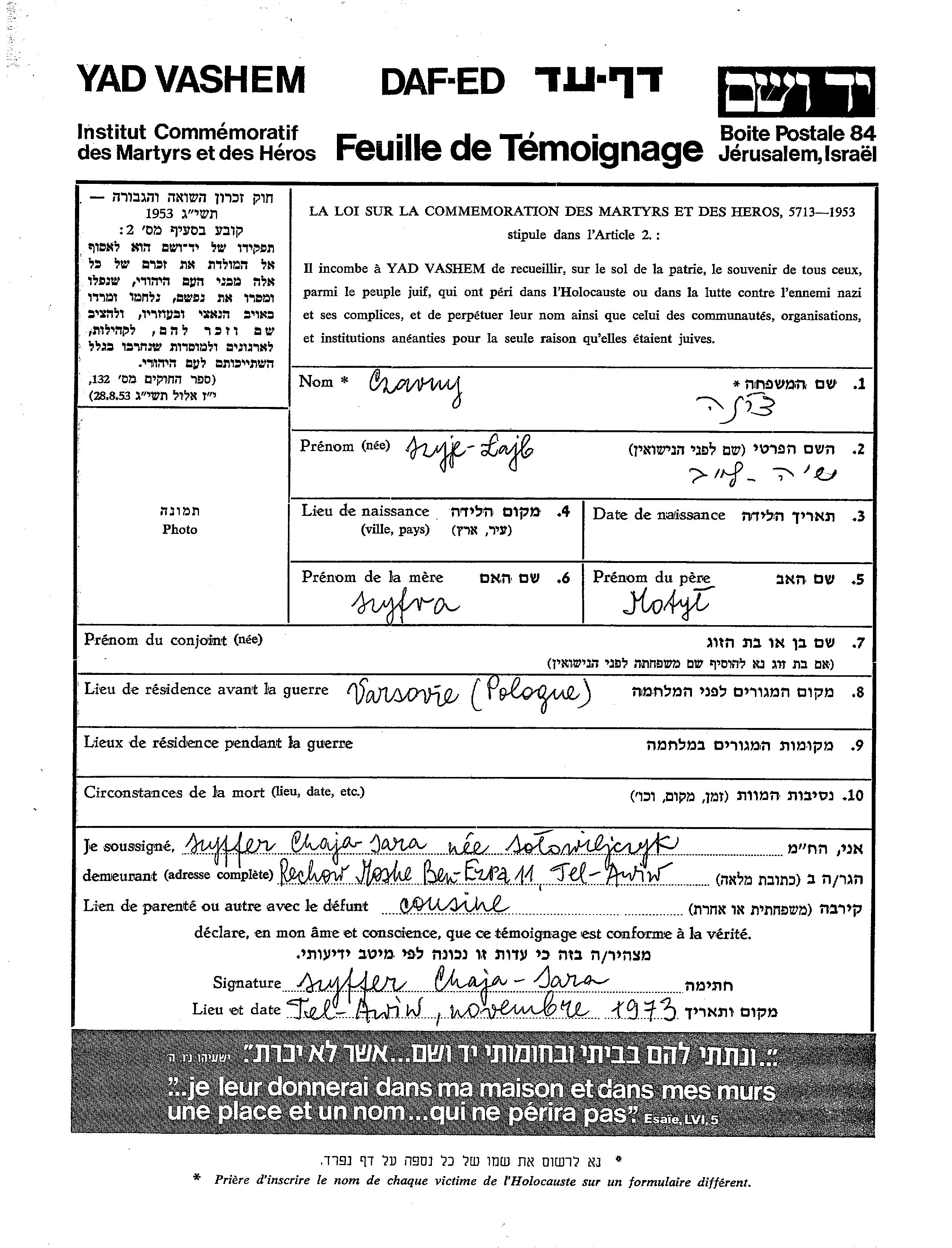 חיפוש שם מוסר דף העד. חיפוש לפי כל שם פרטי, כולל כינוי או שם חיבה