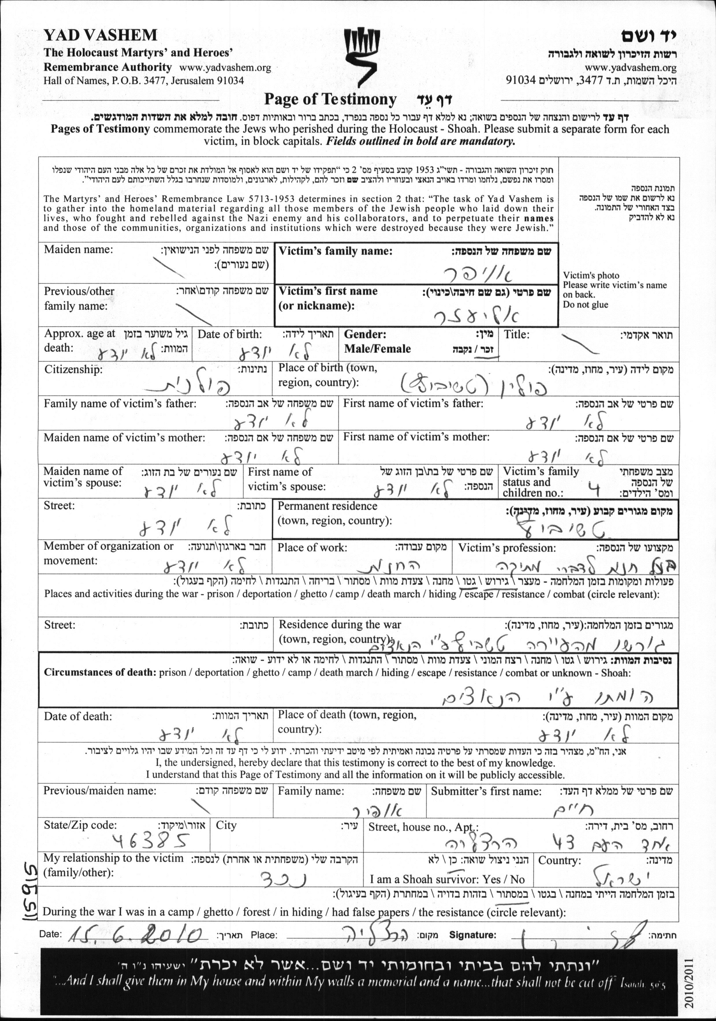 יד ושם - המפעל להנצחת השמות בדפי עד