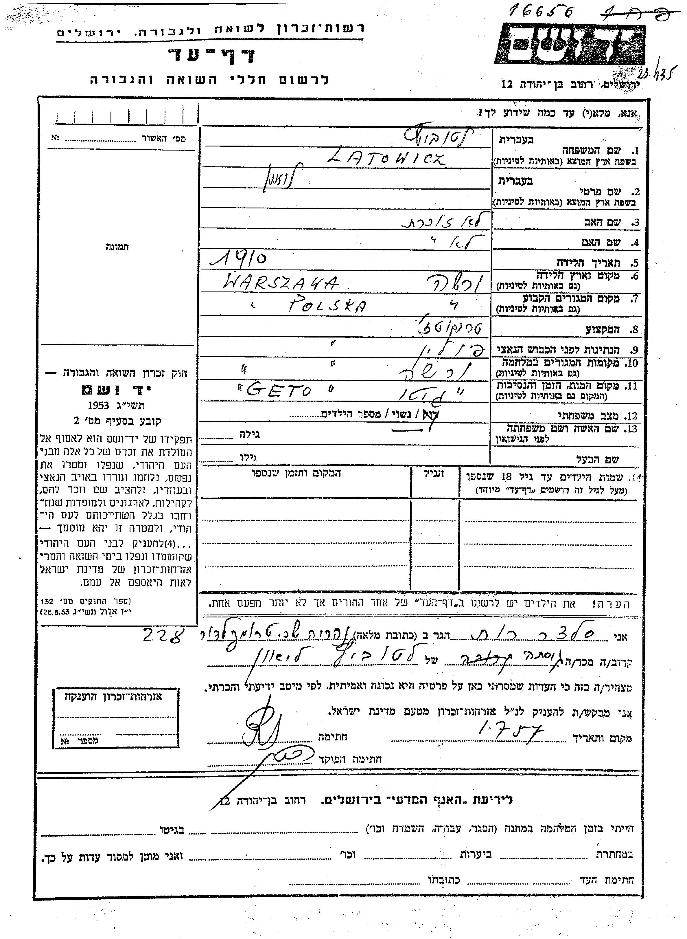Search by name of any place during the Holocaust period: Town,Village, Camp, Ghetto, District, Region or Country