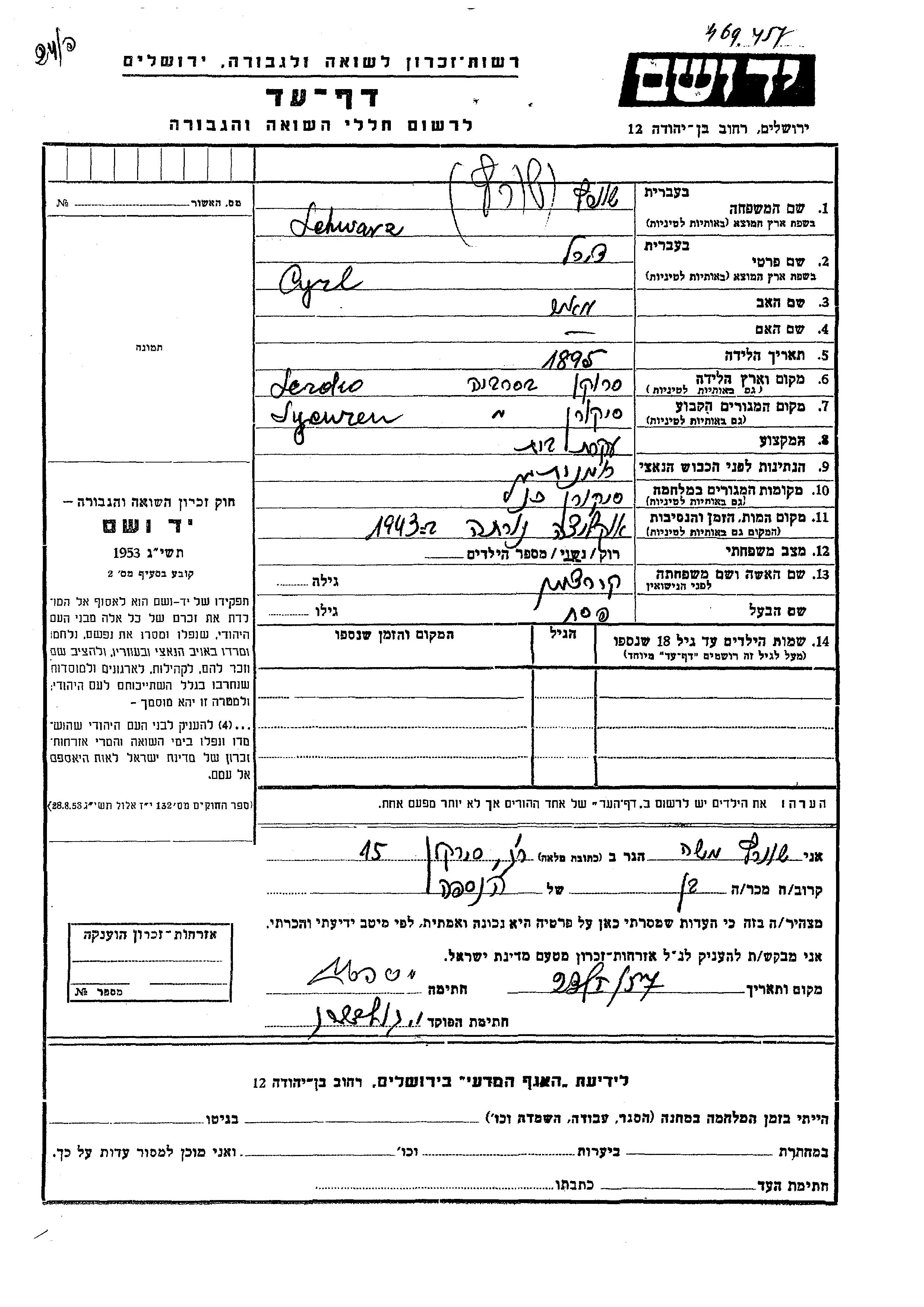 יד ושם - המפעל להנצחת השמות בדפי עד