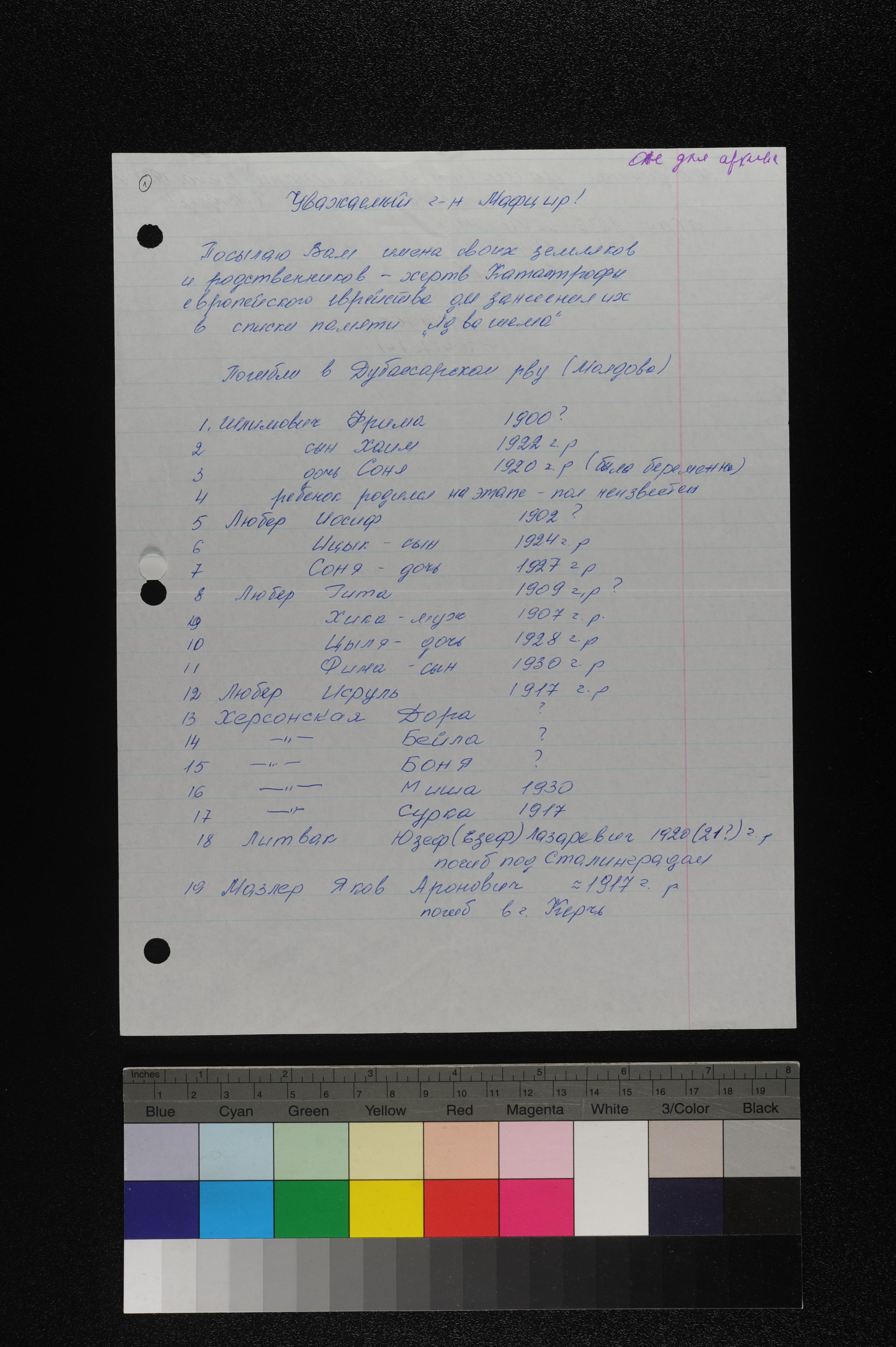 ליטווק Yuzef 1920 Dubossary, אוקראינה (ברה"מ) רשימת נרדפים