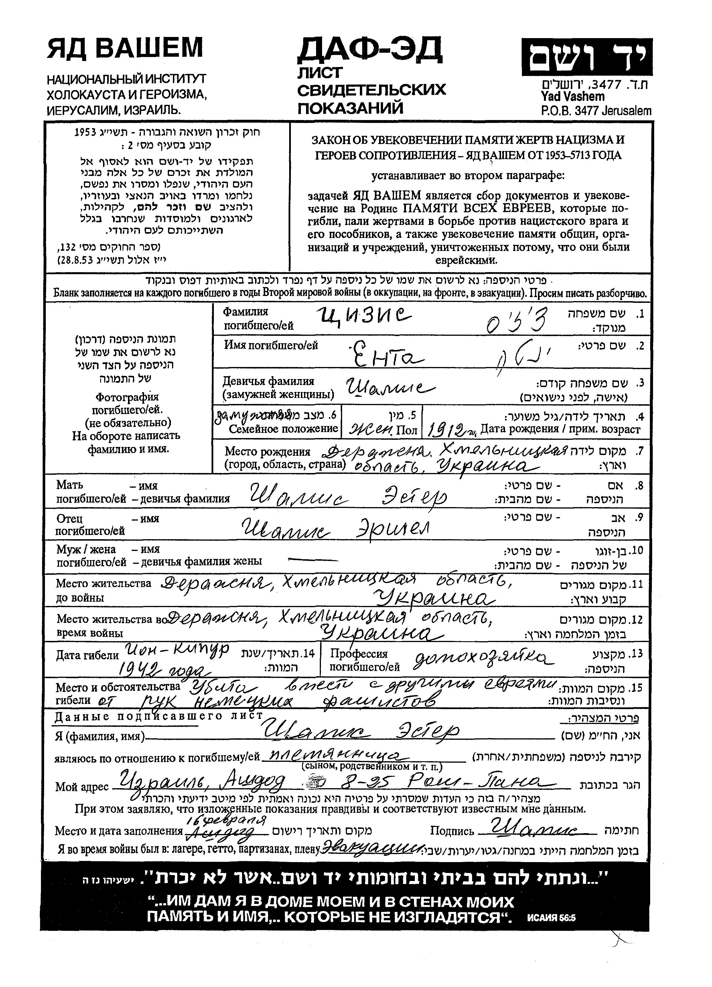 חיפוש שם מוסר דף העד. חיפוש לפי כל שם פרטי, כולל כינוי או שם חיבה