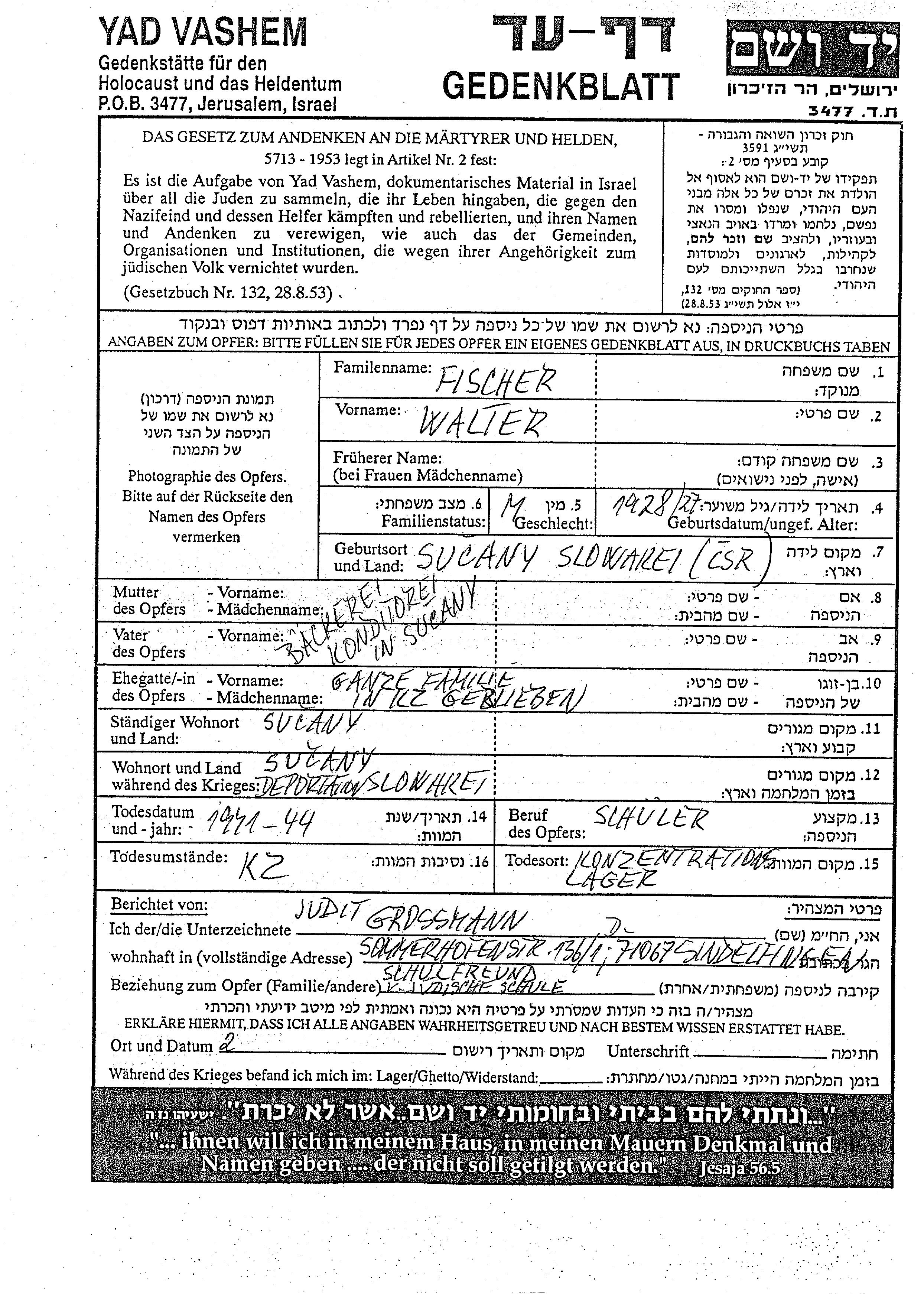 Fischer Walter 1928 Sucany, צ'כוסלובקיה דף-עד