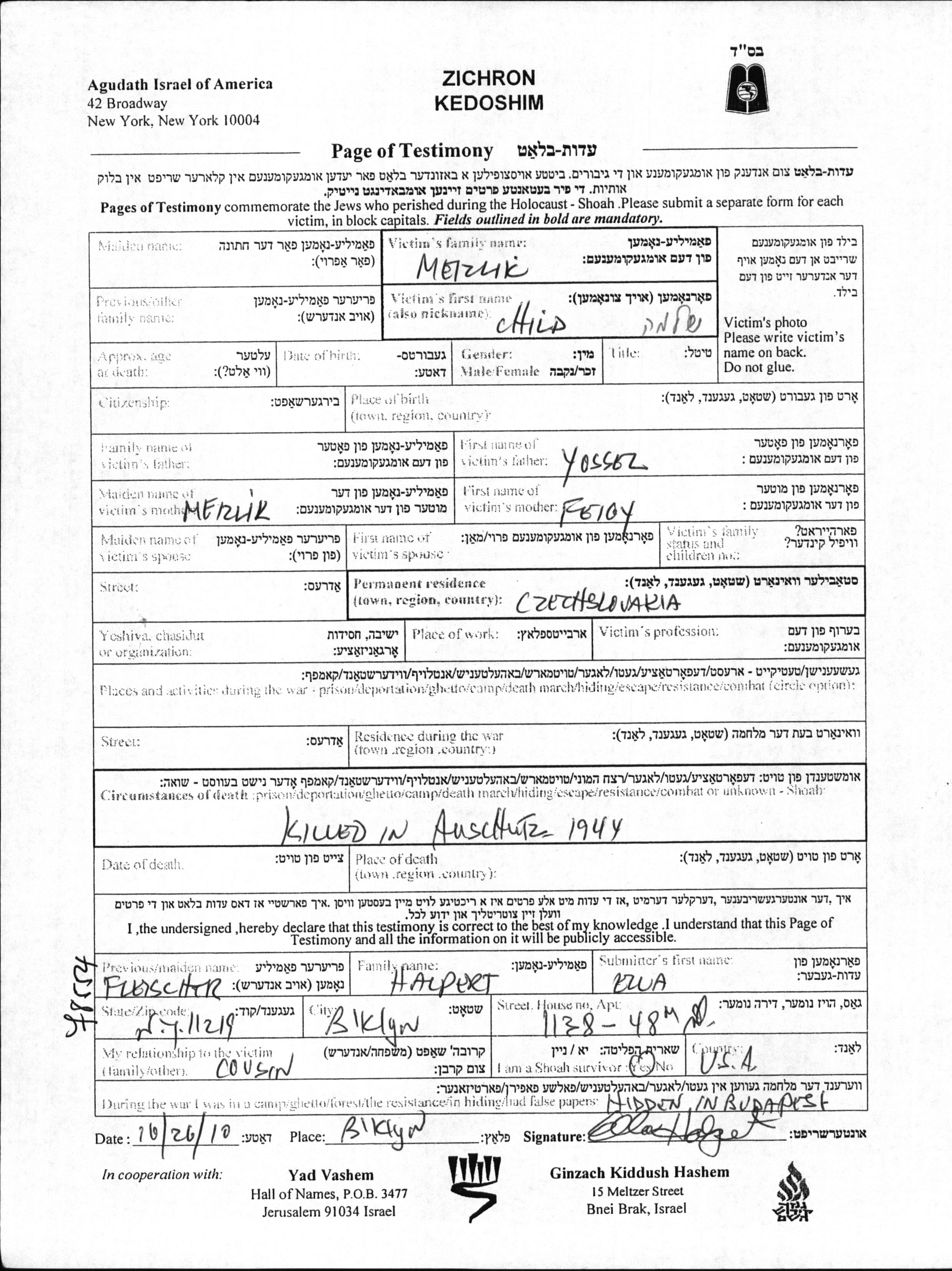 מייזליק שלמה צ'כוסלובקיה דף-עד