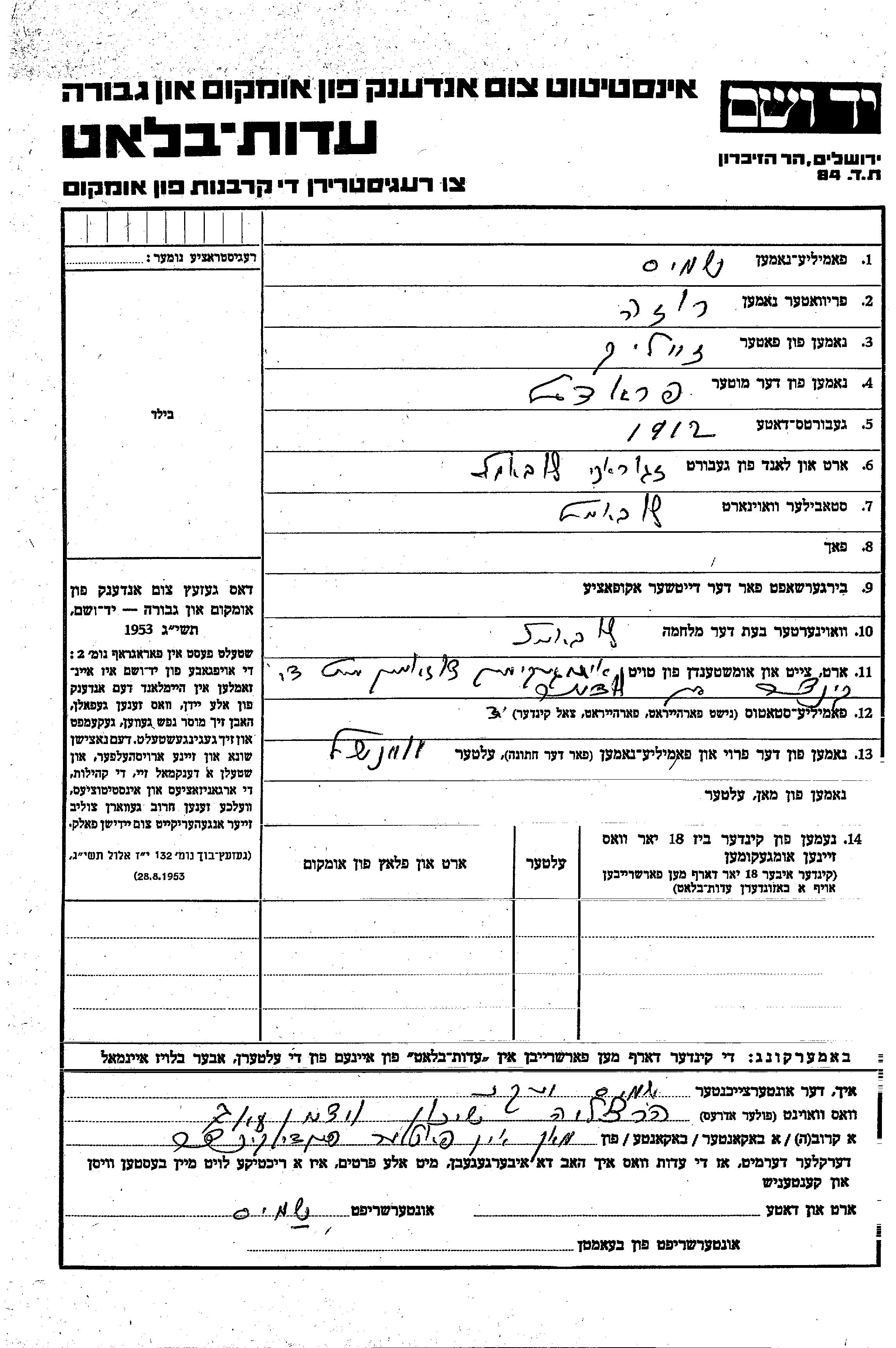 חיפוש שם מוסר דף העד. חיפוש לפי כל שם פרטי, כולל כינוי או שם חיבה