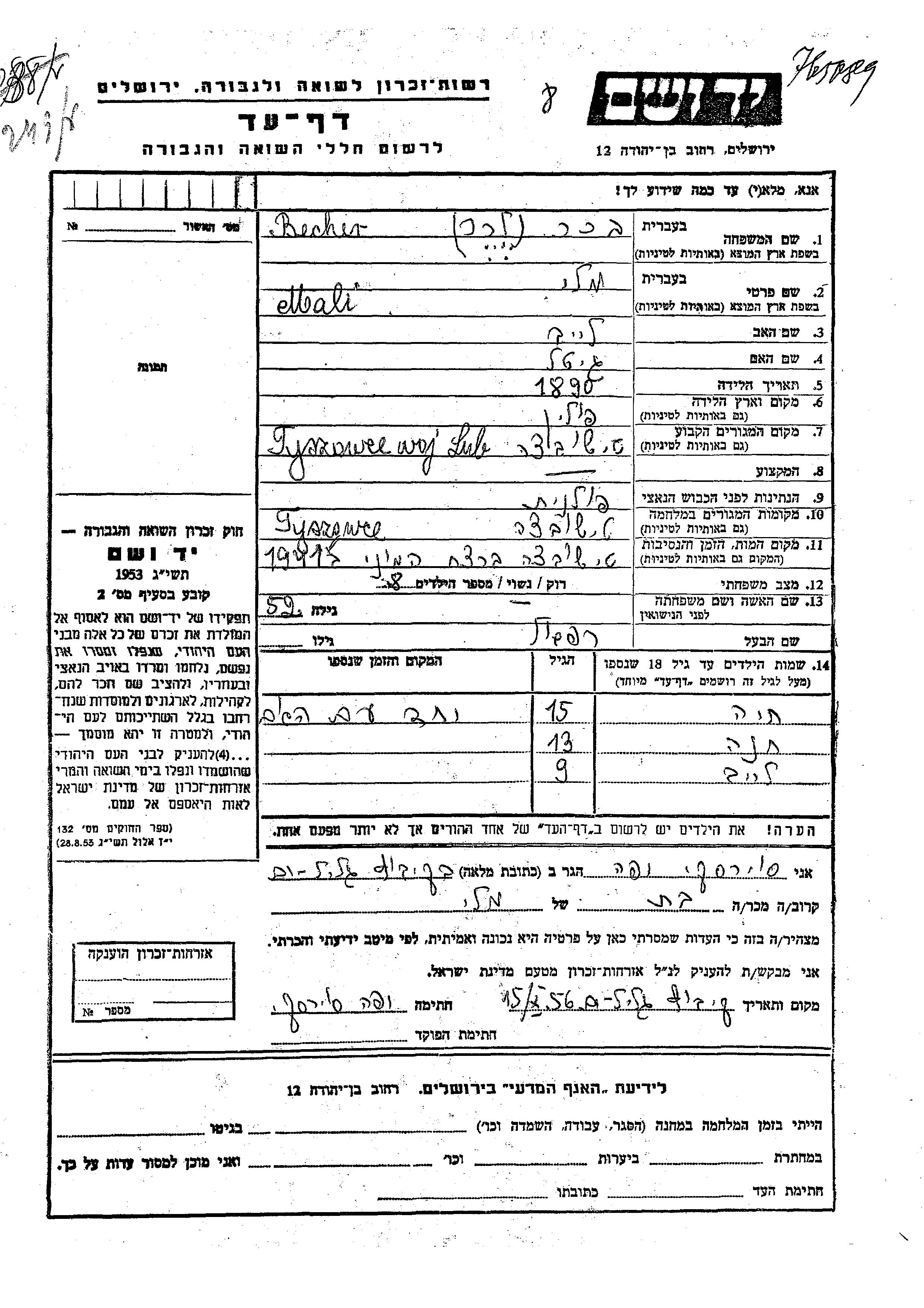 יד ושם - המפעל להנצחת השמות בדפי עד