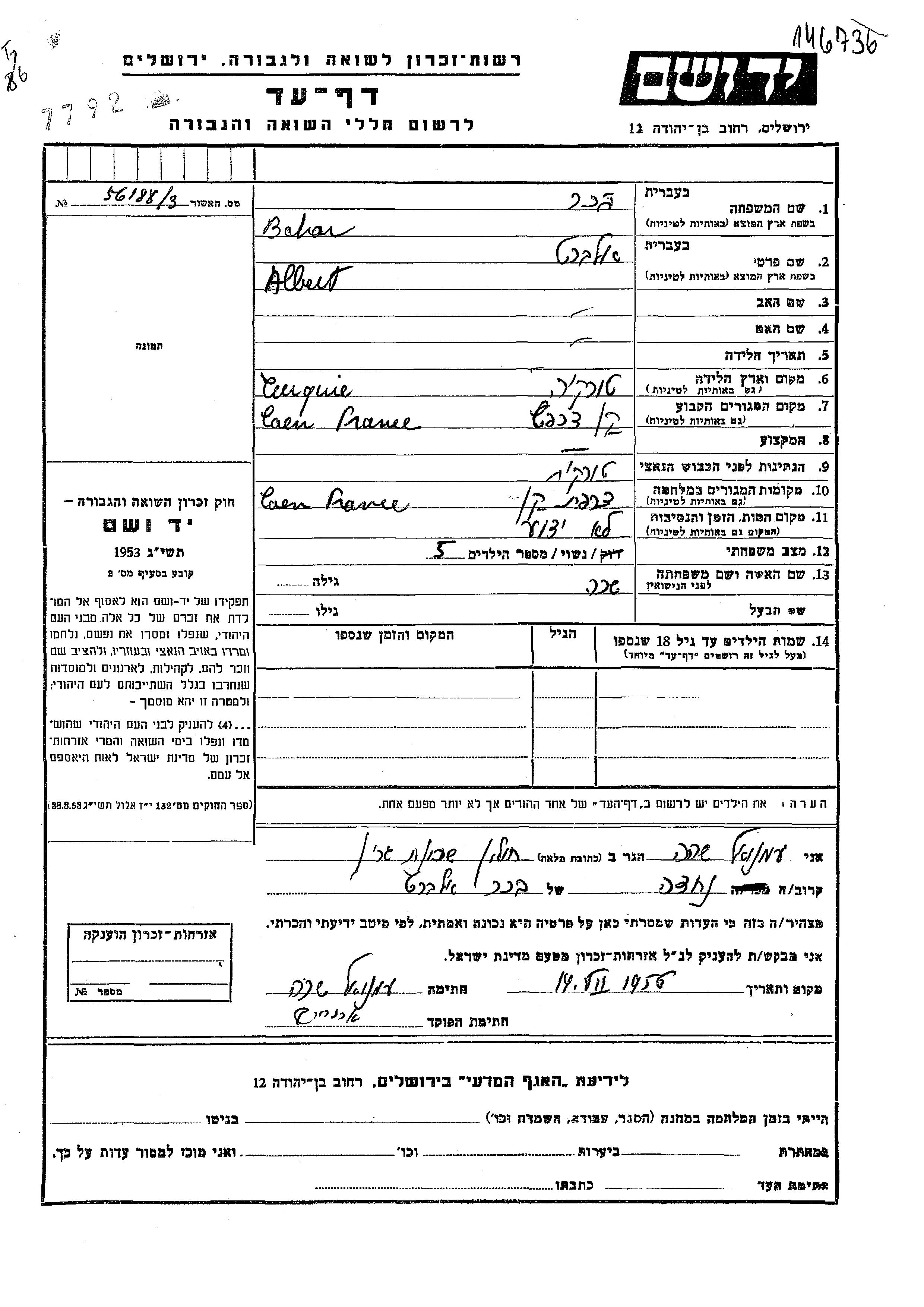 אלברט בהר בכר נולד בטורקיה שבטורקיה. הוא היה נשוי לשרה. לפני מלחמת העולם השניה התגורר בCaen שבצרפת. בזמן המלחמה הוא היה בCaen שבצרפת. אלברט נרצח בשואה.