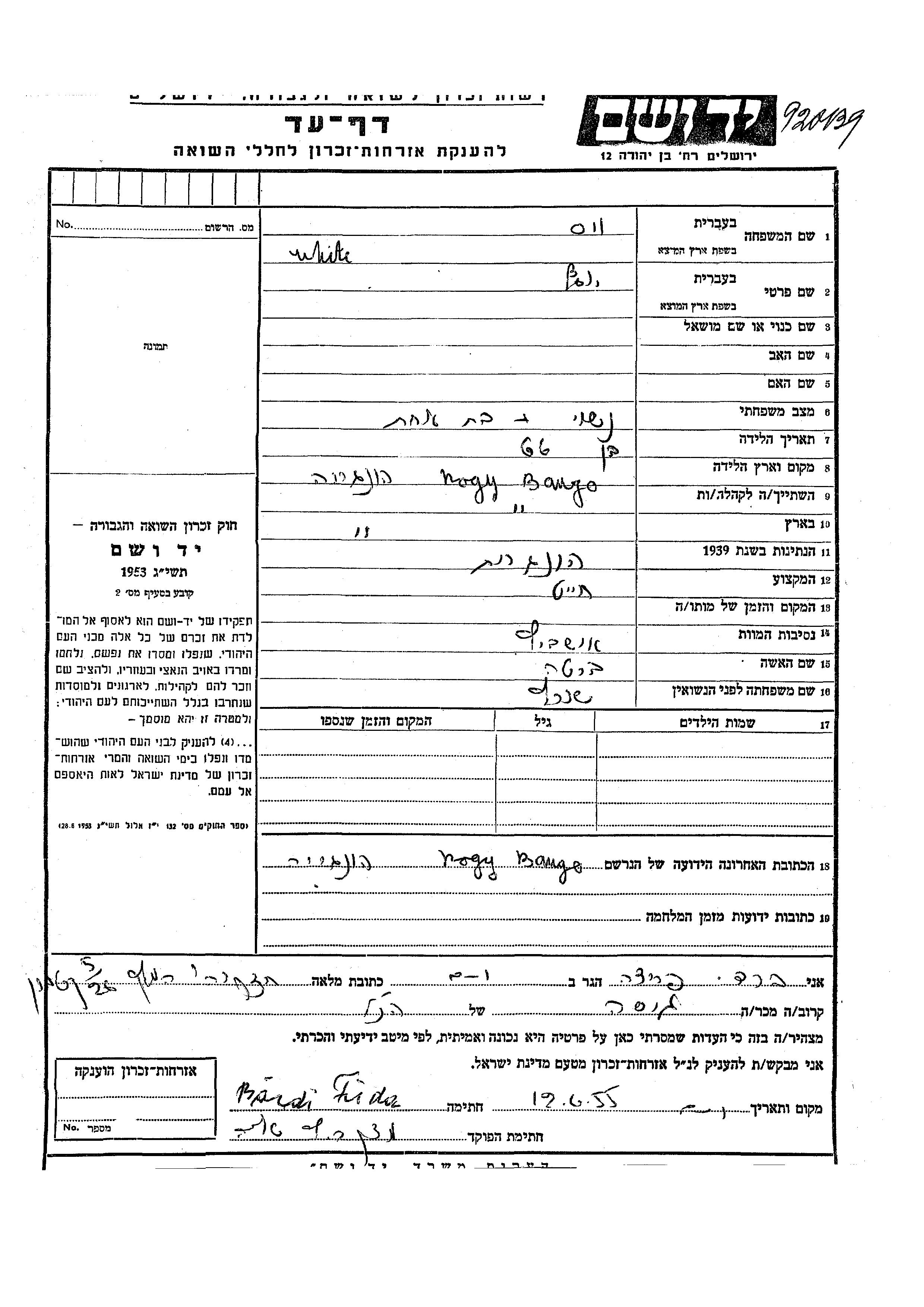 יוסף White ויס נולד בNagy Banyo שברומניה. הוא היה חייט ונשוי לברטה לבית שורץ. לפני מלחמת העולם השניה התגורר בNagy Banyo שברומניה. יוסף נרצח בשואה. מקום המוות: Auschwitz שבפולין.