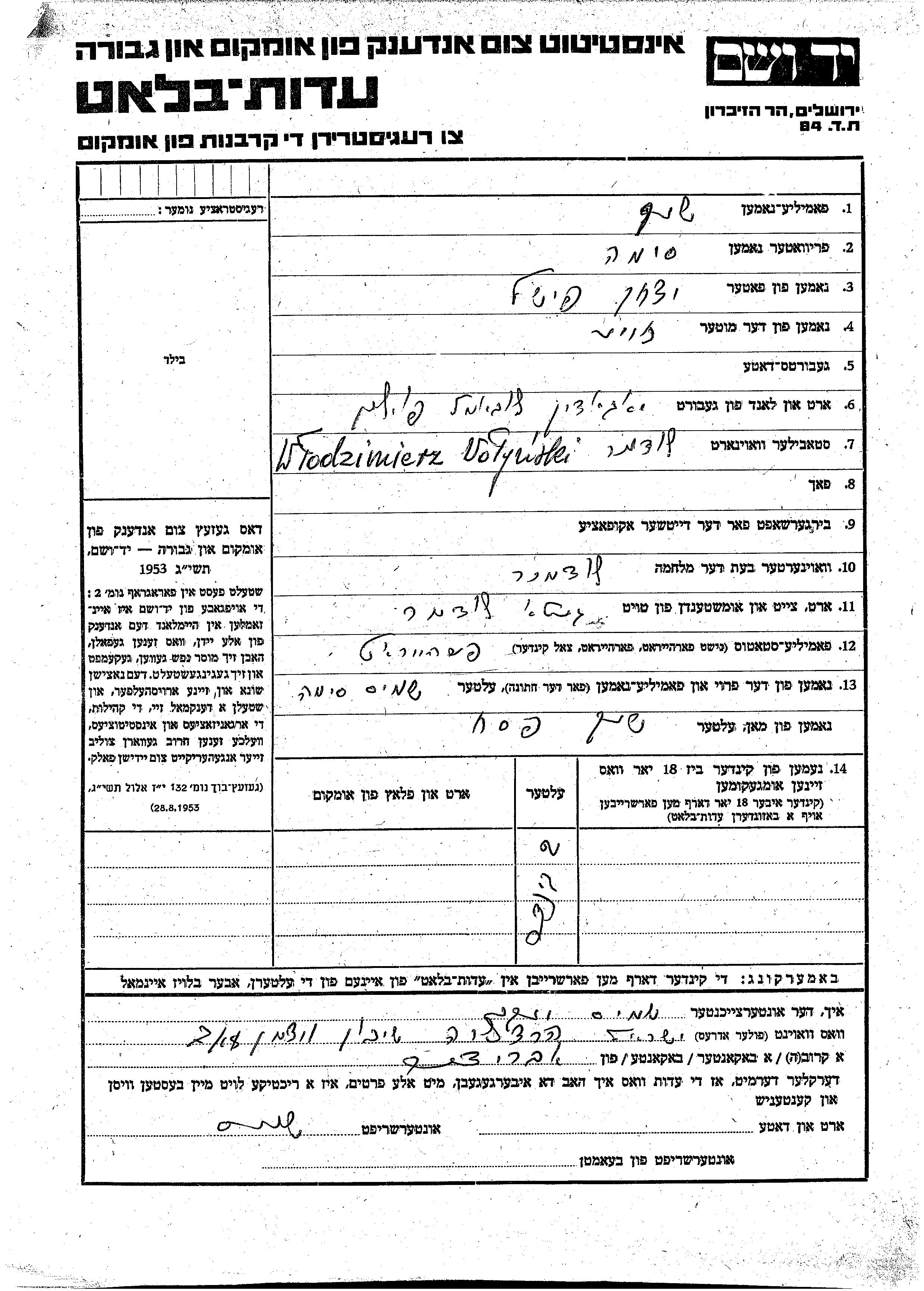 יד ושם - המפעל להנצחת השמות בדפי עד