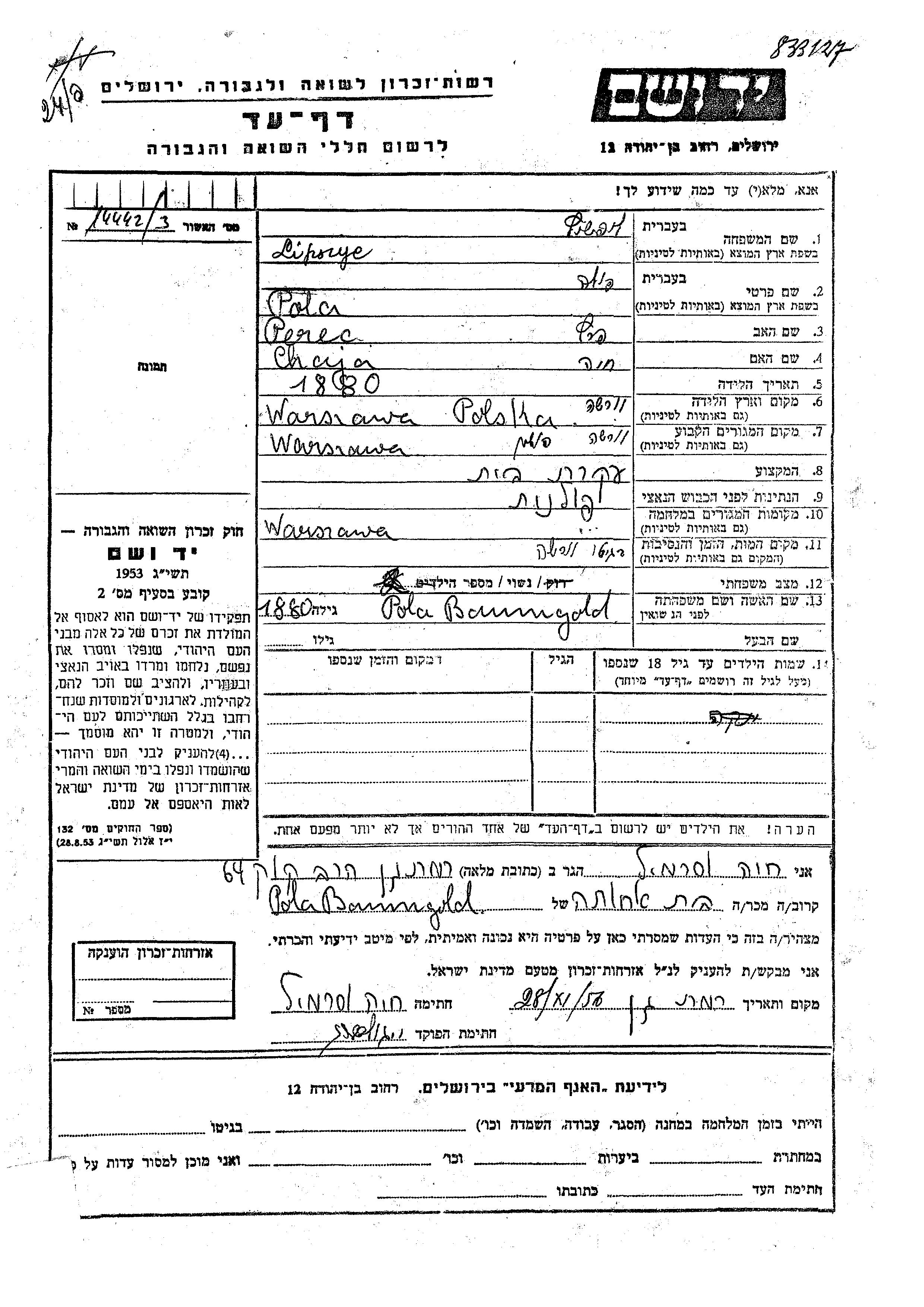היא נרצחה בשואה. מקום המוות: Warsaw שבפולין.