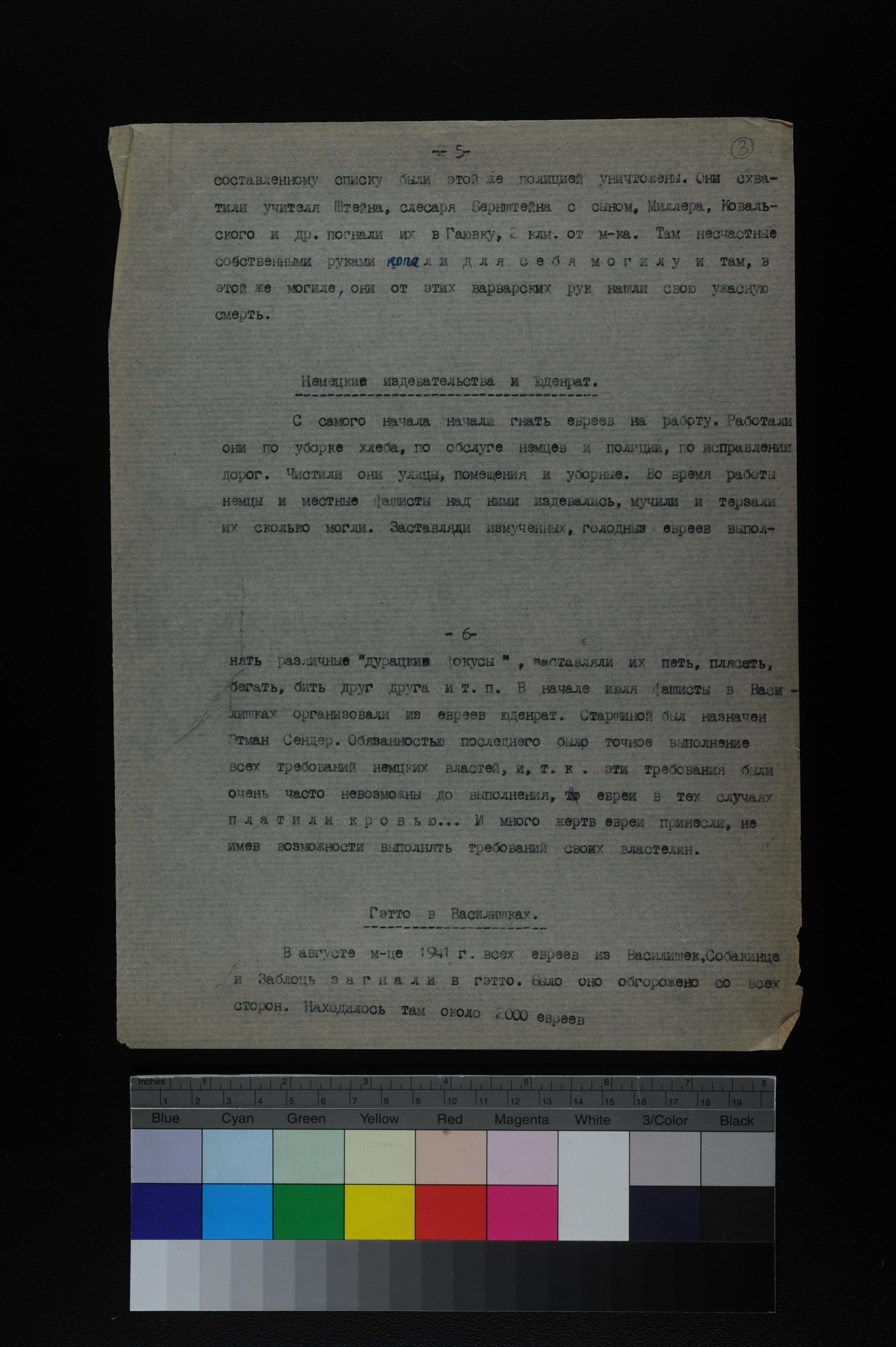 עדויות שנאספו ע"י Mikhail Rayak ו- Girsh Rayak על גורלם של יהודים ב- Vasilishki בשנים 1941-1943