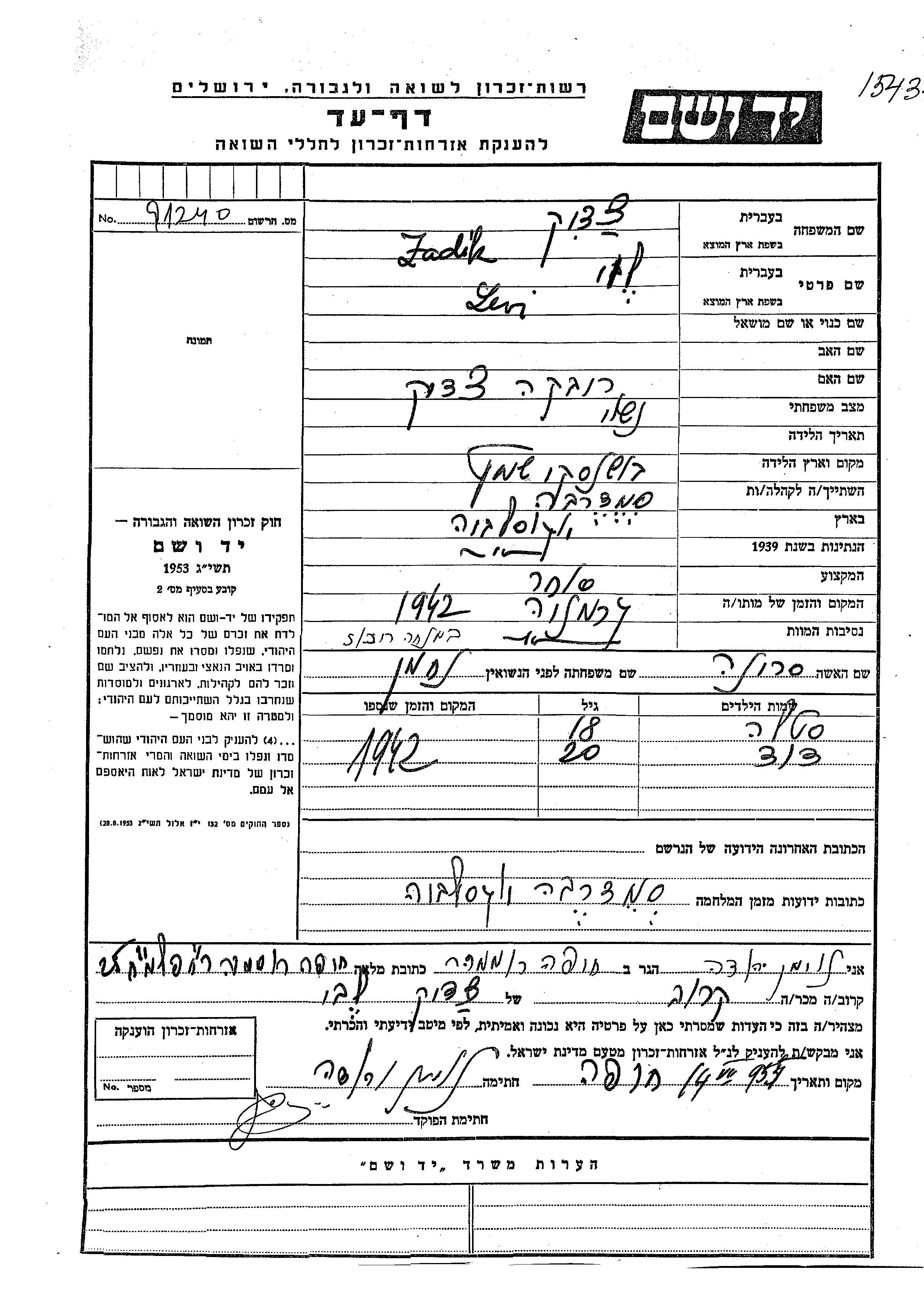 יד ושם - המפעל להנצחת השמות בדפי עד