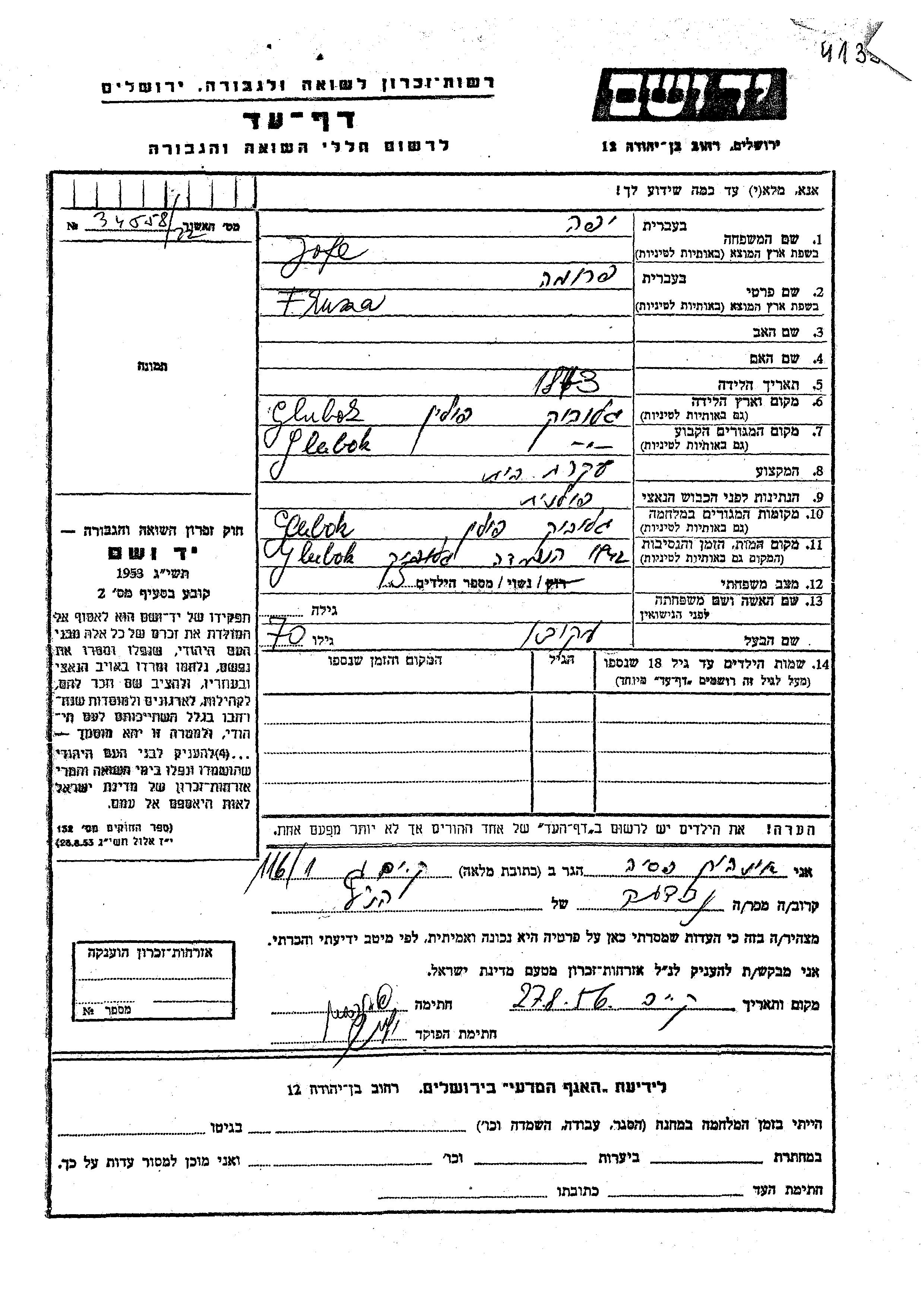 יד ושם - המפעל להנצחת השמות בדפי עד