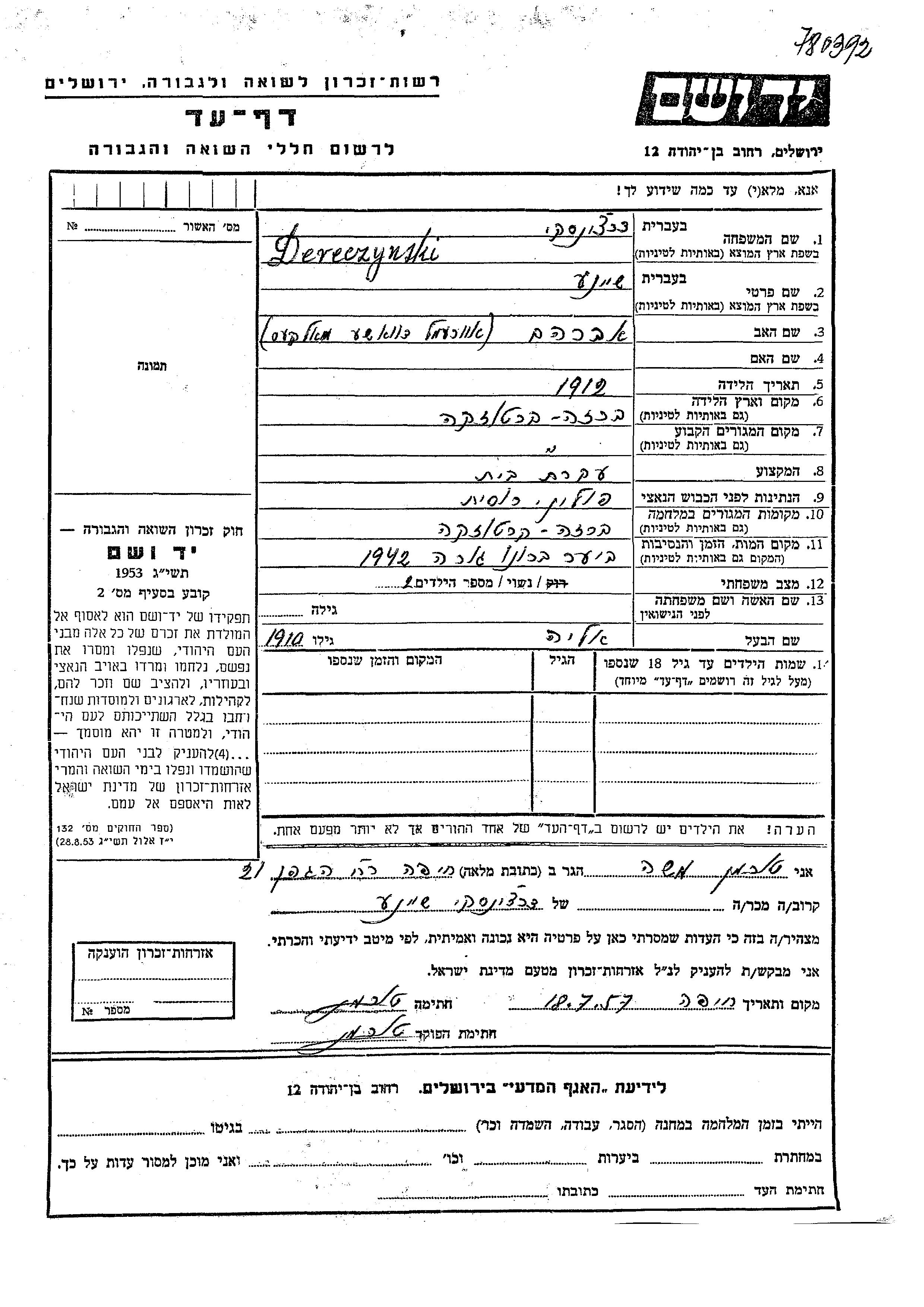 יד ושם - המפעל להנצחת השמות בדפי עד