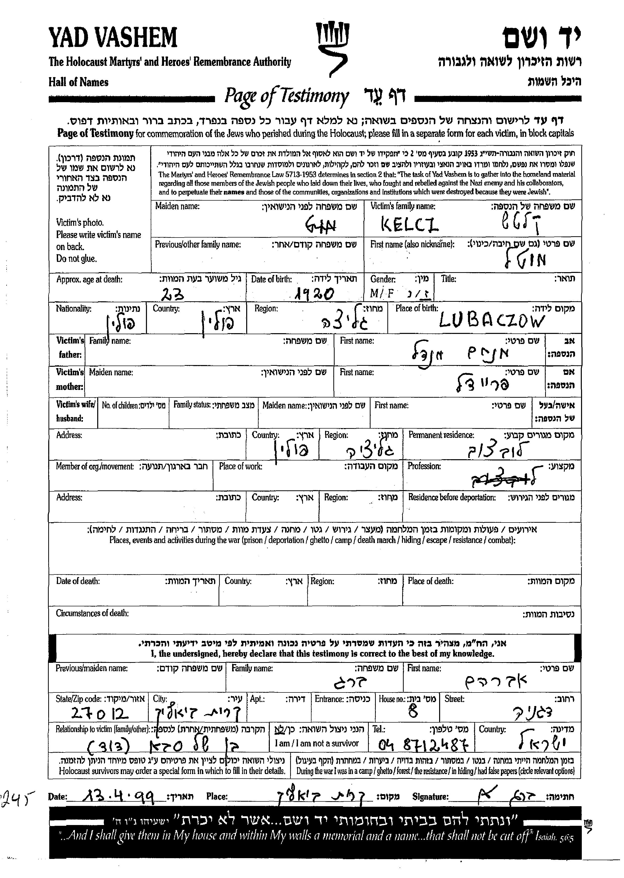 יד ושם - המפעל להנצחת השמות בדפי עד