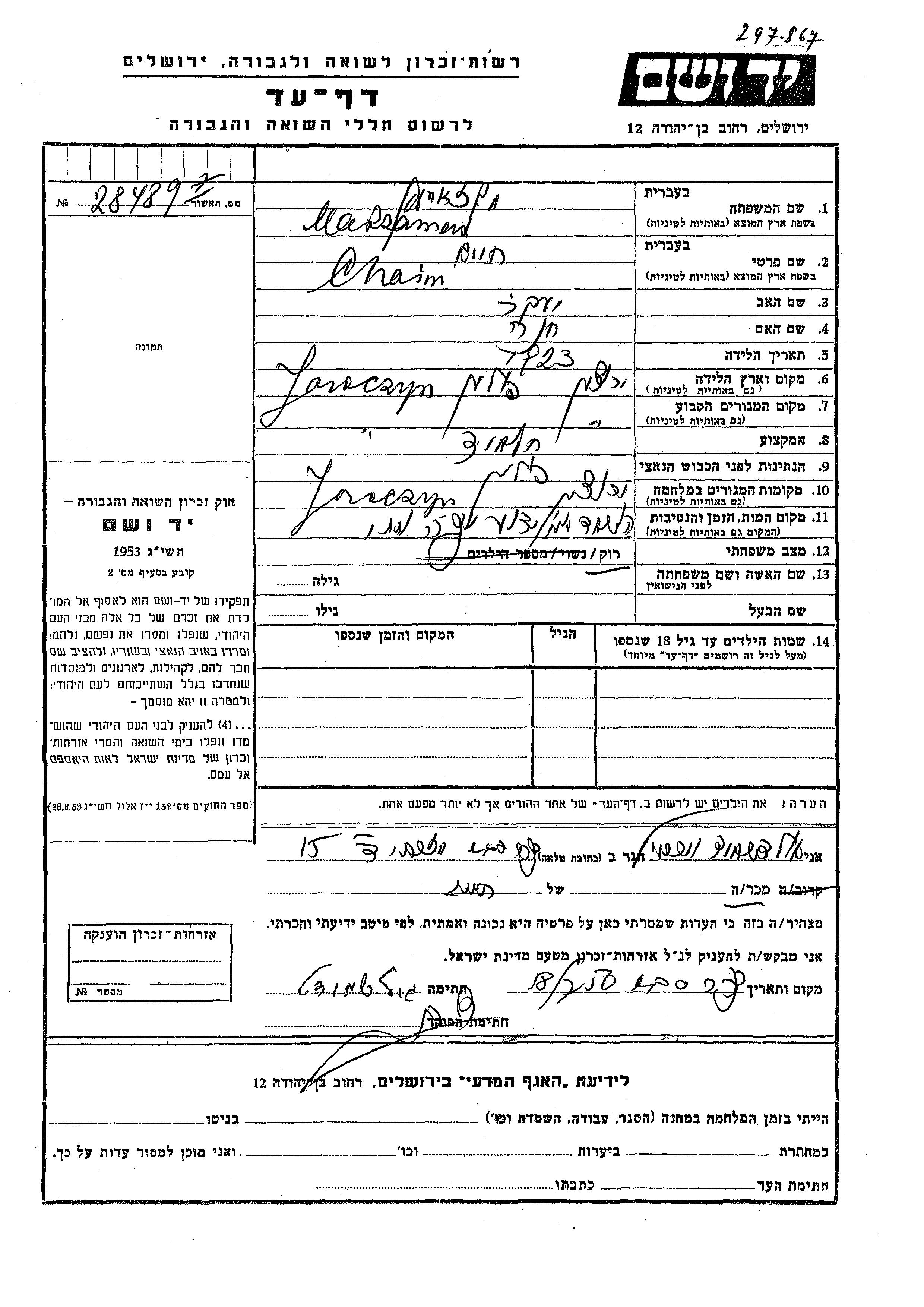 יד ושם - המפעל להנצחת השמות בדפי עד