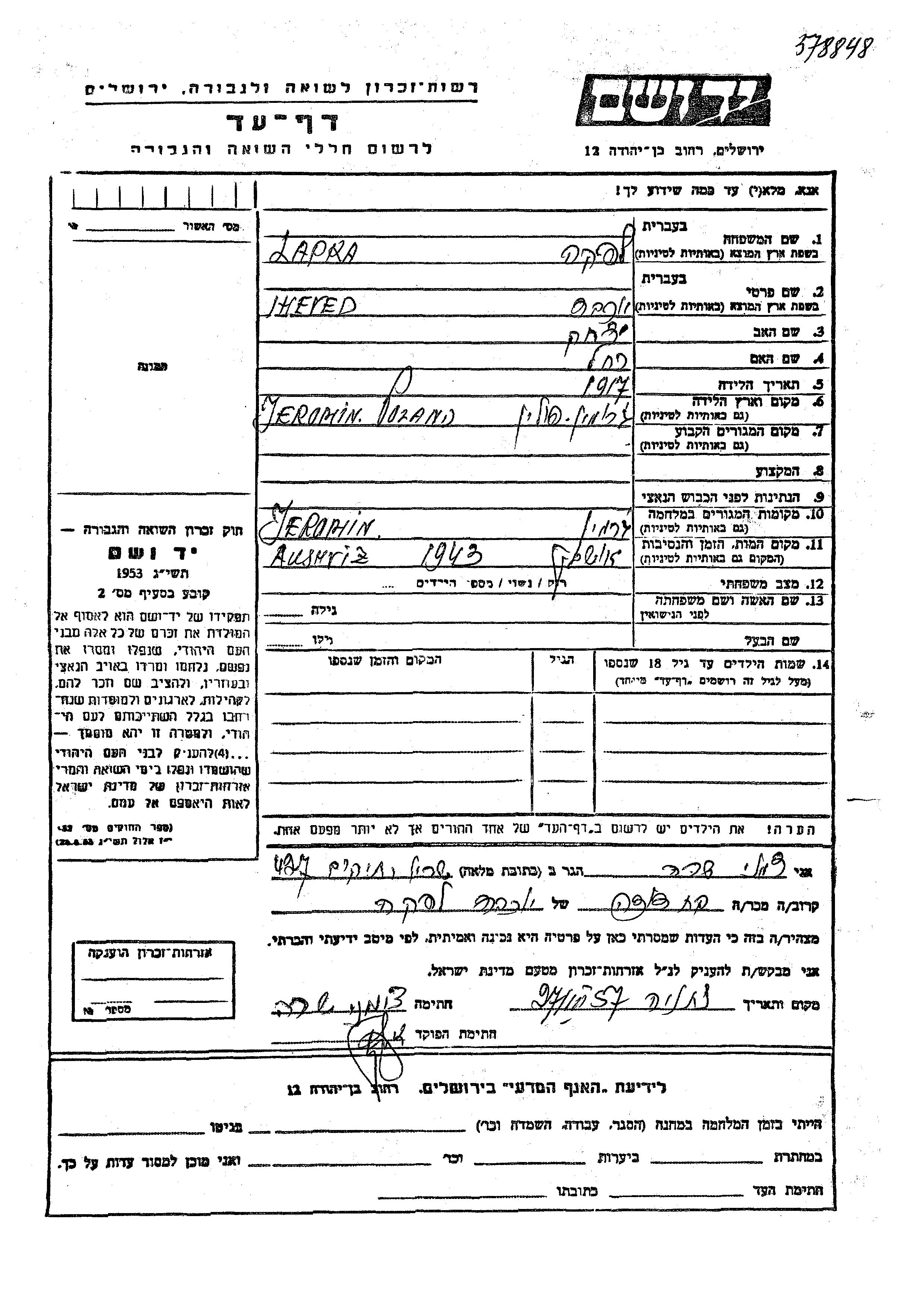 יד ושם - המפעל להנצחת השמות בדפי עד