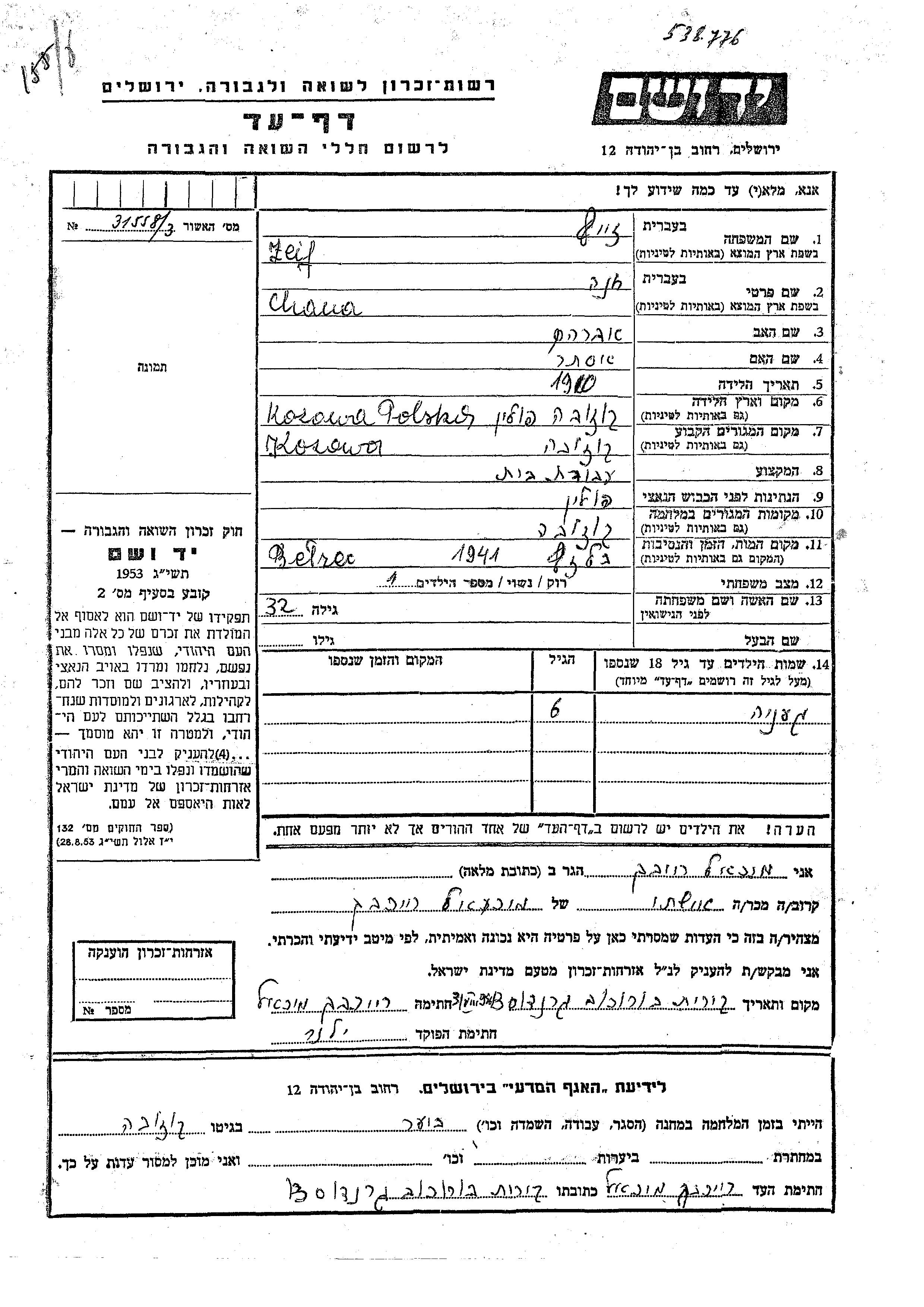חנה נרצחה בשואה. מקום המוות: Belzec שבפולין בשנת 1941.