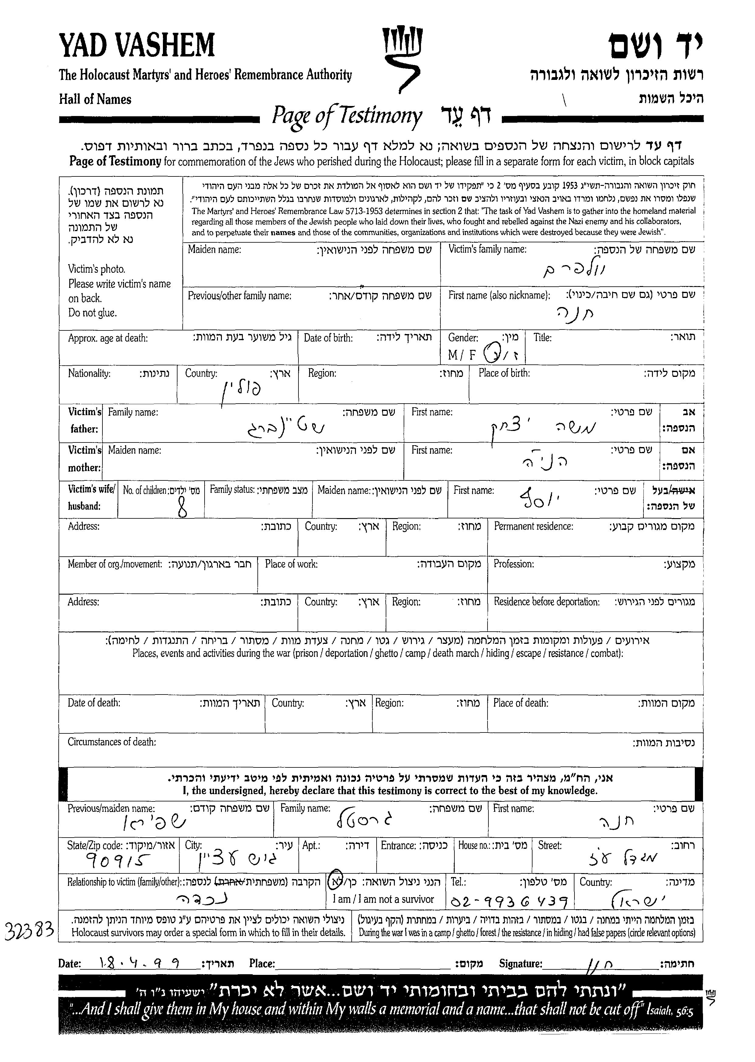 חיפוש שם מוסר דף העד. חיפוש לפי כל שם פרטי, כולל כינוי או שם חיבה