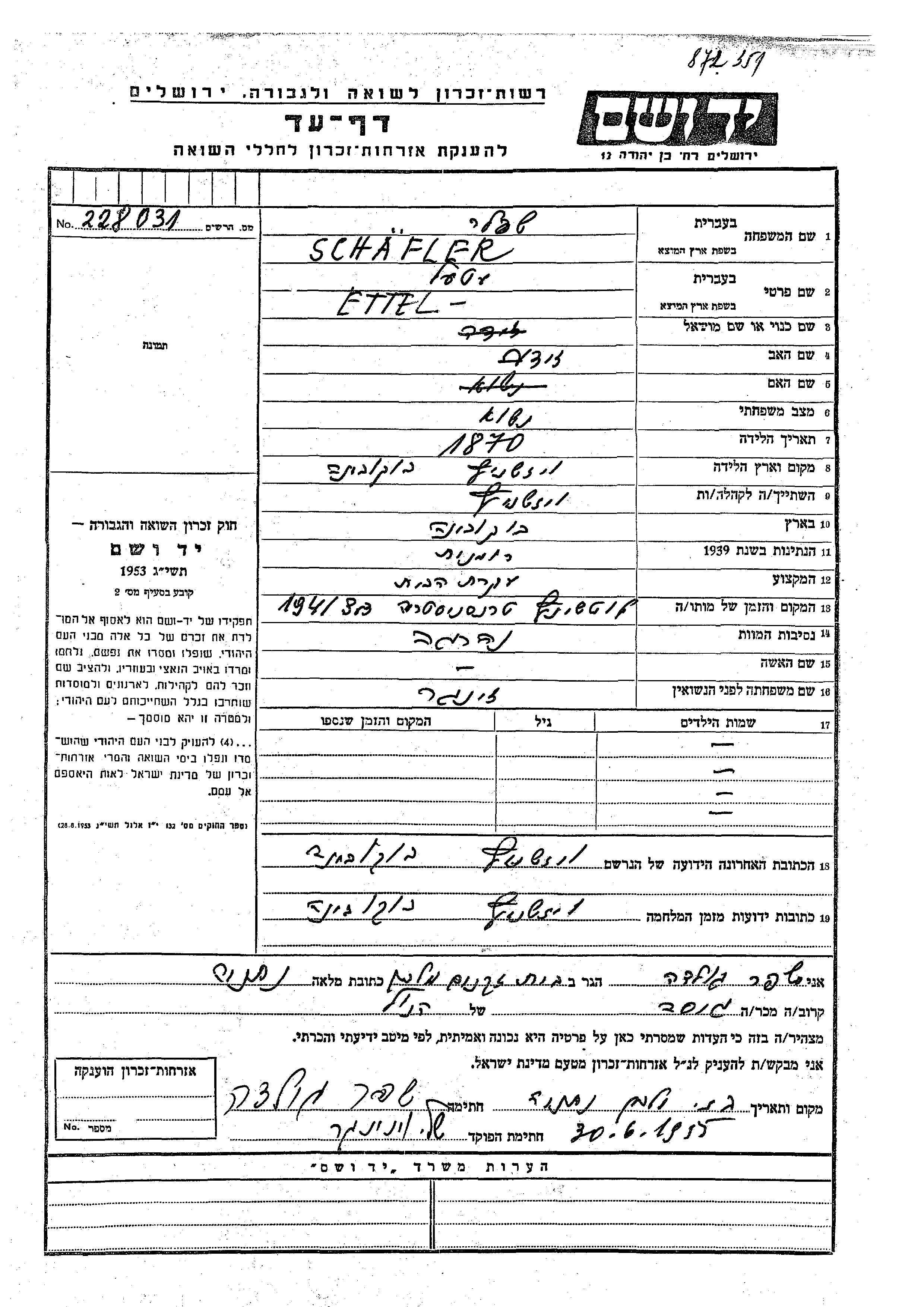 יד ושם - המפעל להנצחת השמות בדפי עד