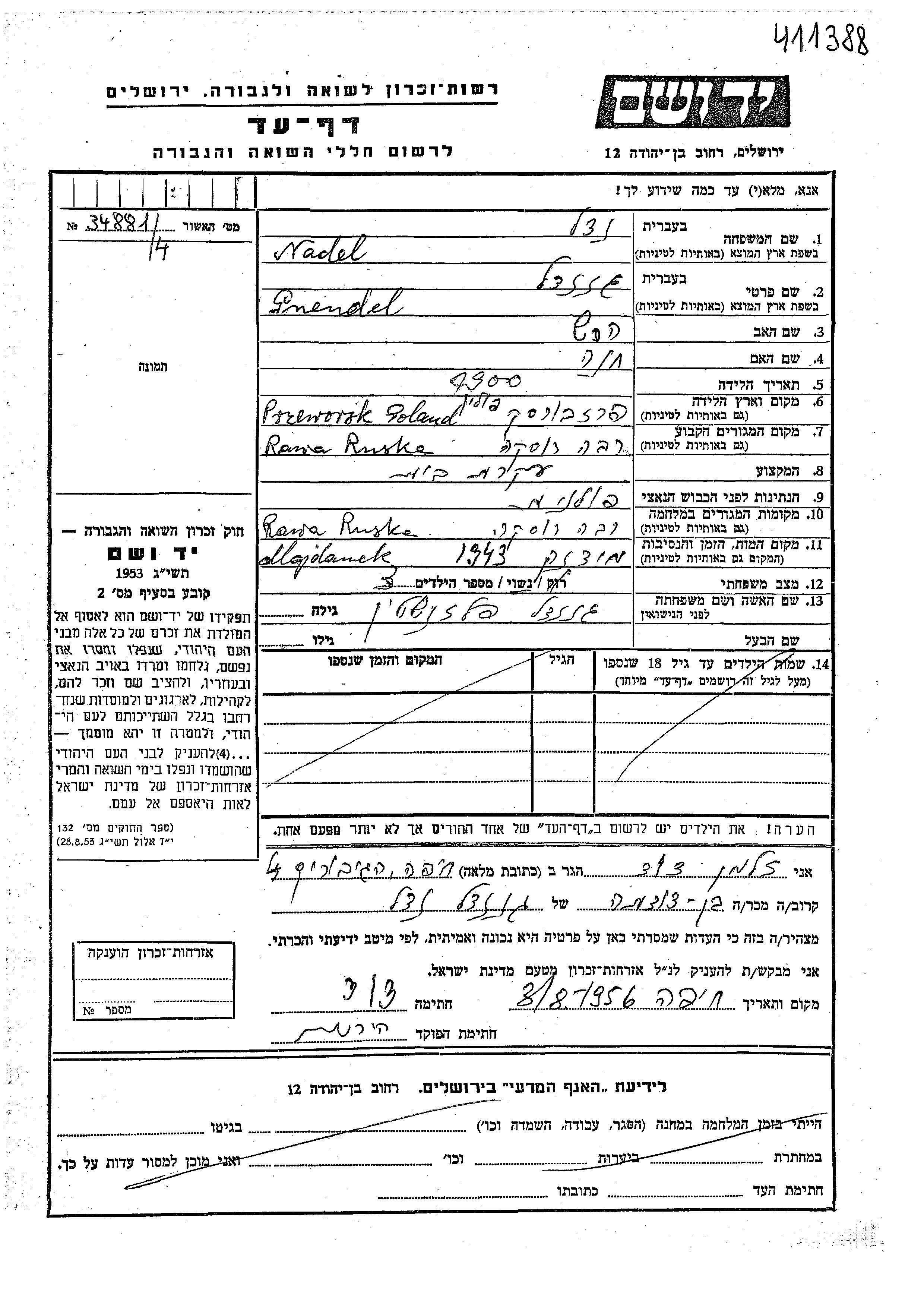 יד ושם - המפעל להנצחת השמות בדפי עד