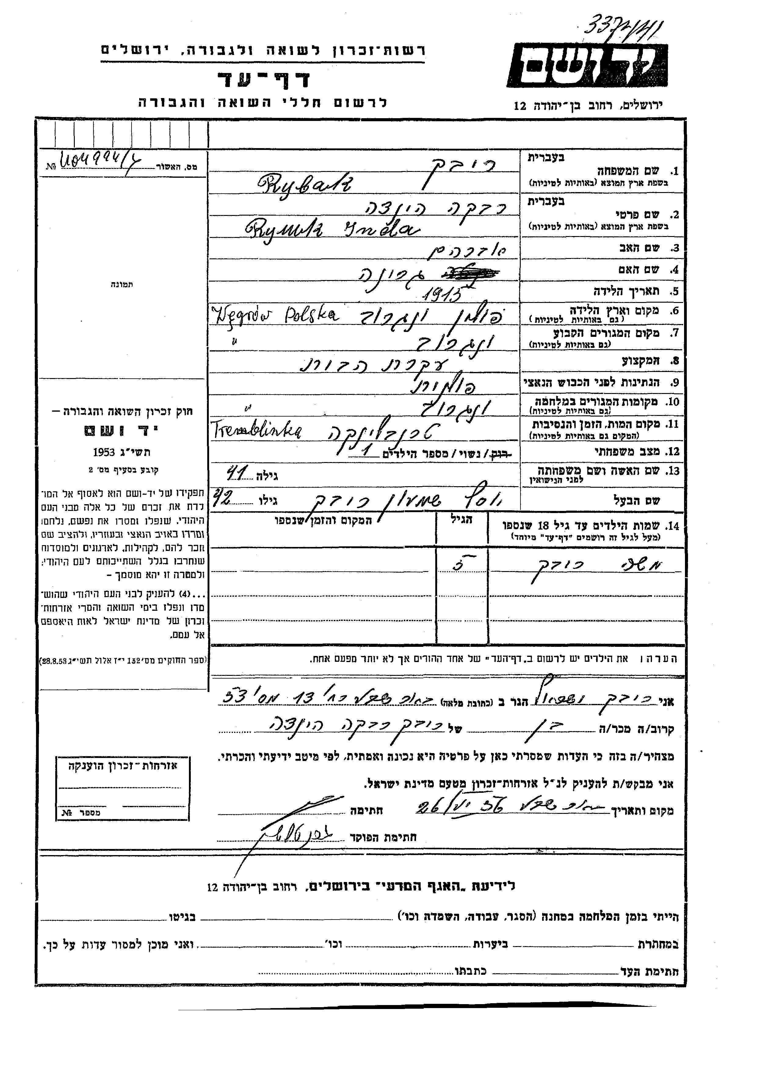 יד ושם - המפעל להנצחת השמות בדפי עד