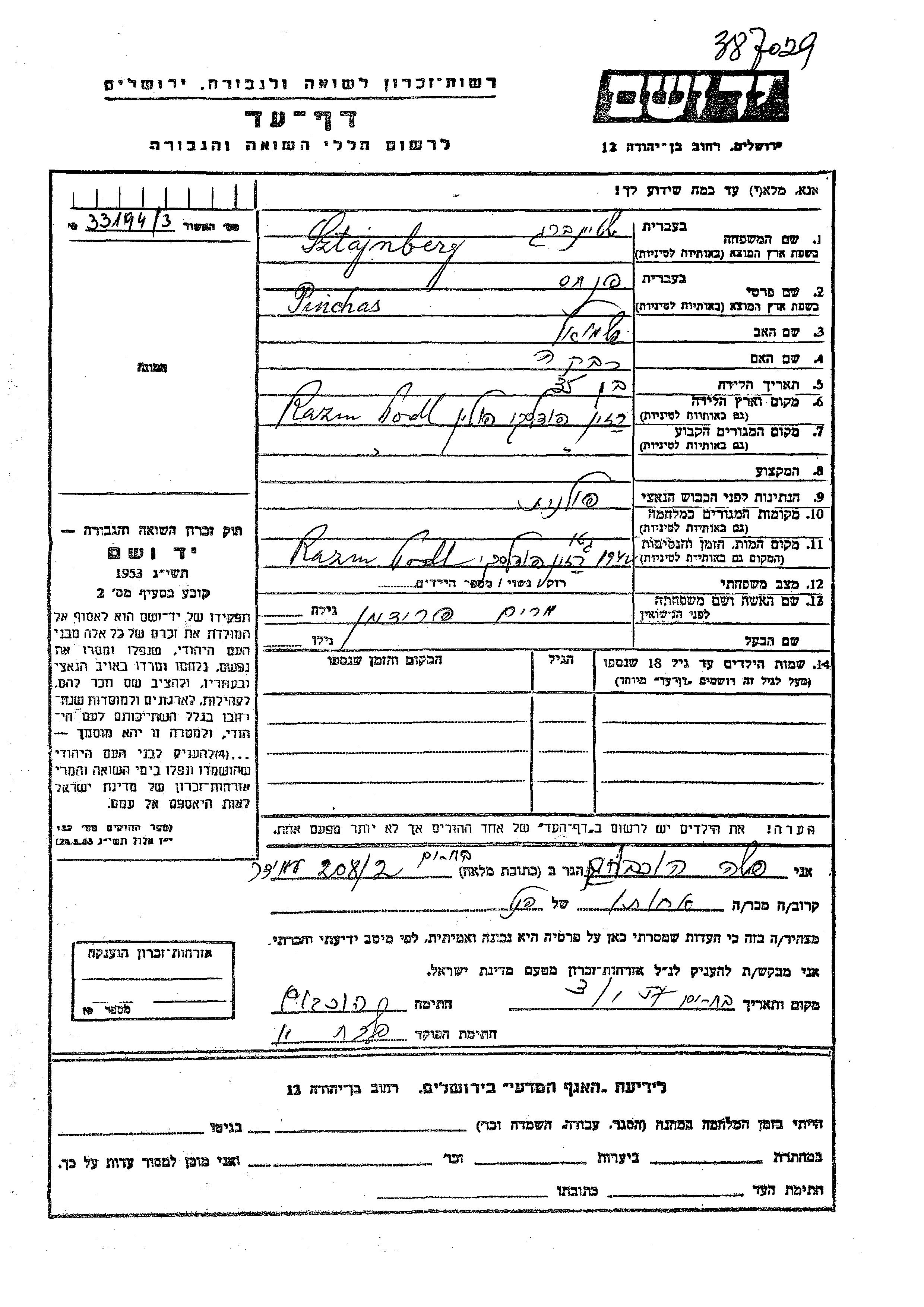 חיפוש שם מוסר דף העד. חיפוש לפי כל שם פרטי, כולל כינוי או שם חיבה
